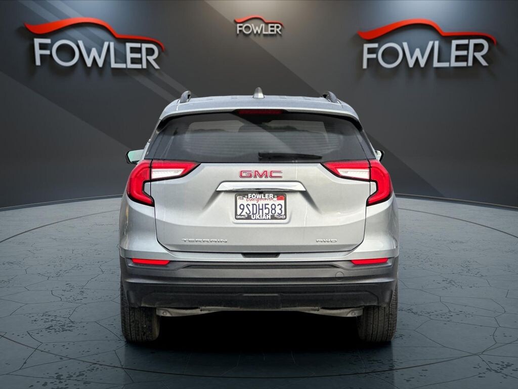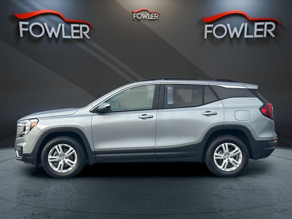 Certified. Sterling Metallic 2024 GMC Terrain SLE AWD 9-Speed Automatic 1.5L DOHC GMC Certified Pre-Owned Certified, AWD, 2 USB Data Ports w/Auxiliary Input Jack, 3.47 Final Drive Axle Ratio, 4-Way Manual Driver's Seat, 4-Way Manual Front Passenger Seat, 4-Wheel Disc Brakes, 4.2" Multi-Color Driver Information Screen, 6 Speakers, 6-Speaker Audio System Feature, 8-Way Power Driver Seat Adjuster, ABS brakes, Air Conditioning, Alloy wheels, AM/FM radio: SiriusXM, Auto High-beam Headlights, Auto-dimming Rear-View mirror, Automatic temperature control, Bluetooth® For Phone, Brake assist, Bumpers: body-color, Compass, Delay-off headlights, Driver & Front Passenger Heated Seats, Driver Convenience Package, Driver door bin, Driver vanity mirror, Dual front impact airbags, Dual front side impact airbags, Dual-Zone Automatic Climate Control, Electronic Stability Control, Emergency communication system: OnStar and GMC connected services capable, Four wheel independent suspension, Front anti-roll bar, Front Bucket Seats, Front Center Armrest, Front reading lights, Fully automatic headlights, Heated door mirrors, Illuminated entry, License Plate Front Mounting Package, Low tire pressure warning, Occupant sensing airbag, Outside temperature display, Overhead airbag, Overhead console, Panic alarm, Passenger door bin, Passenger vanity mirror, Power door mirrors, Power Driver Lumbar Control, Power steering, Power windows, Preferred Equipment Group 3SA, Premium Cloth Seat Trim, Radio data system, Radio: GMC Infotainment Audio System w/7" Display, Rear anti-roll bar, Rear seat center armrest, Rear window defroster, Rear window wiper, Remote keyless entry, Remote Start, Roof-Mounted Luggage Rack Side Rails, Security system, SiriusXM, Speed control, Speed-sensing steering, Split folding rear seat, Spoiler, Steering wheel mounted audio controls, Tachometer, Telescoping steering wheel, Tilt steering wheel, Traction control, Trip computer, Variably intermittent wipers, Wheels: 17" x 7" Silver Painted Aluminum, Wireless Apple CarPlay/Wireless Android Auto, AWD.