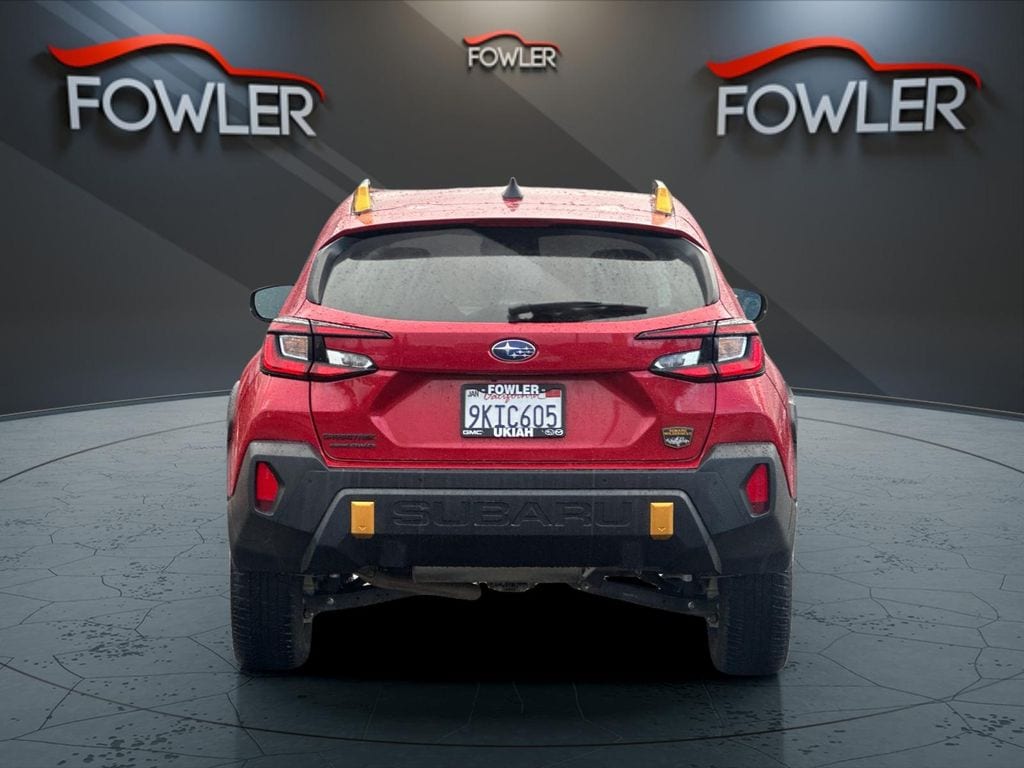 Certified. Lithium Red Pearl 2024 Subaru Crosstrek Wilderness AWD Lineartronic CVT 2.5L 4-Cylinder DOHC 16V Subaru Certified Pre-Owned Certified, 10-Way Power Driver's Seat, 4-Wheel Disc Brakes, 4.11 Axle Ratio, 6 Speakers, ABS brakes, Air Conditioning, Alloy wheels, AM/FM radio: SiriusXM, Anti-whiplash front head restraints, Auto High-beam Headlights, Automatic temperature control, Brake assist, Bumpers: body-color, Driver door bin, Driver vanity mirror, Dual front impact airbags, Dual front side impact airbags, Electronic Stability Control, Emergency communication system: STARLINK Safety and Security (Subscription Required), Exterior Parking Camera Rear, Four wheel independent suspension, Front anti-roll bar, Front Bucket Seats, Front Center Armrest, Front dual zone A/C, Front fog lights, Front reading lights, Fully automatic headlights, harman/kardon Aud & Pwr Moonroof & Pwr Driver Seat, harman/kardon Surround Sound Speaker System, Heated door mirrors, Heated Front Bucket Seats, Heated front seats, Illuminated entry, Knee airbag, Leather Shift Knob, Low tire pressure warning, Occupant sensing airbag, Outside temperature display, Overhead airbag, Overhead console, Panic alarm, Passenger door bin, Passenger vanity mirror, Power door mirrors, Power Moonroof, Power steering, Power windows, Radio data system, Radio: Subaru STARLINK 11.6" Multimedia Plus Sys, Rear anti-roll bar, Rear seat center armrest, Rear window defroster, Rear window wiper, Remote keyless entry, Security system, Speed control, Speed-sensing steering, Split folding rear seat, Spoiler, STARLINK/Apple CarPlay/Android Auto, Steering wheel mounted audio controls, Tachometer, Telescoping steering wheel, Tilt steering wheel, Traction control, Trip computer, Turn signal indicator mirrors, Variably intermittent wipers, Wheels: 17" x 7.0J Matte Black Aluminum Alloy, Wilderness StarTex Upholstery.