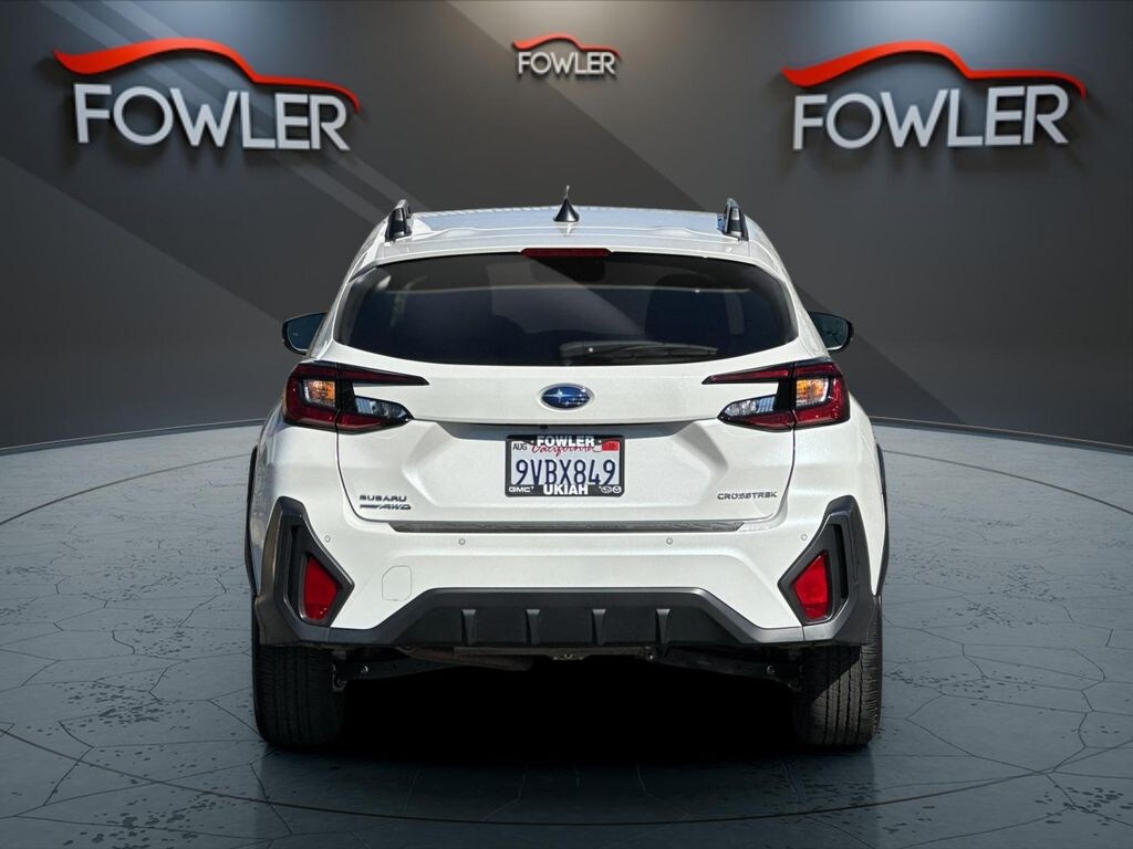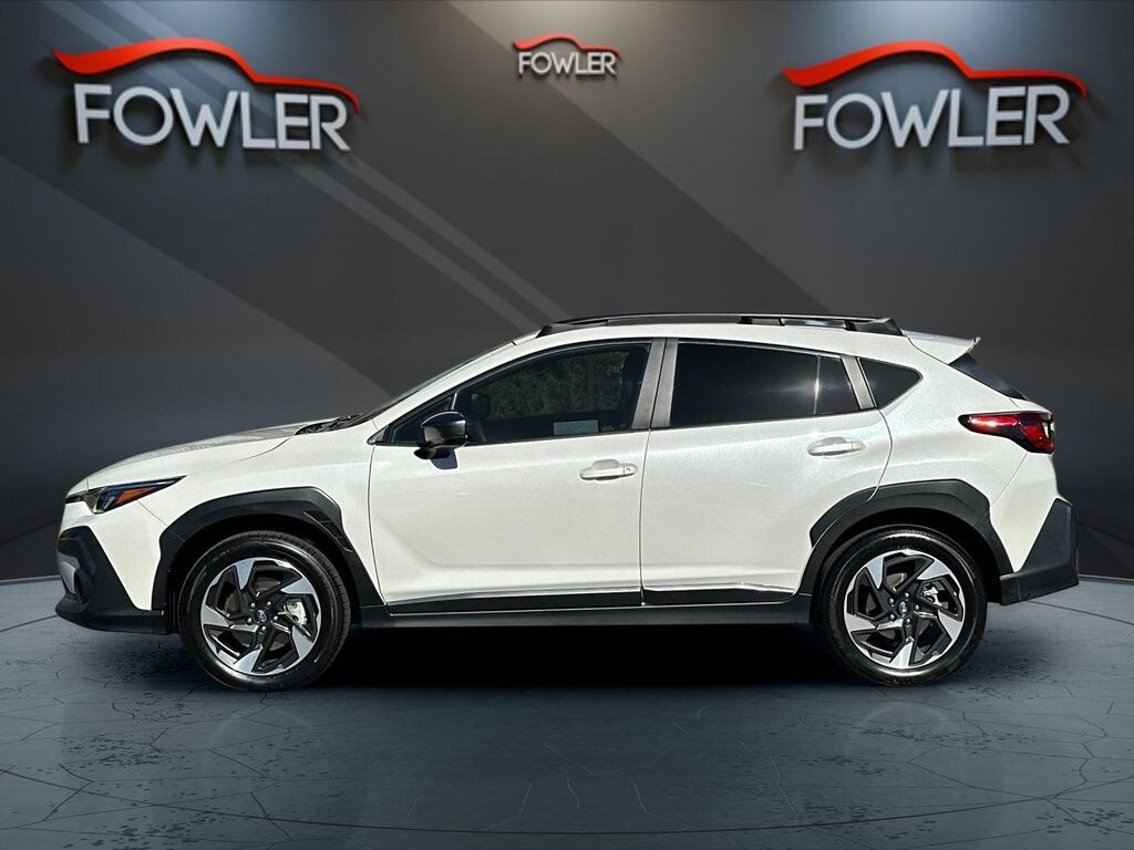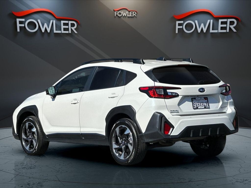 Crystal White Pearl 2025 Subaru Crosstrek Limited AWD Lineartronic CVT 2.5L 4-Cylinder DOHC 16V 4-Wheel Disc Brakes, 6 Speakers, ABS brakes, Air Conditioning, All-Weather Floor Liners, Alloy wheels, AM/FM radio: SiriusXM, Anti-whiplash front head restraints, Auto High-beam Headlights, Auto-Dimming Exterior Mirror w/Approach Light, Auto-Dimming Mirror w/Compass & HomeLink, Automatic temperature control, Brake assist, Bumpers: body-color, Cargo Net, Driver door bin, Driver vanity mirror, Dual front impact airbags, Dual front side impact airbags, Electronic Stability Control, Emergency communication system, Exterior Parking Camera Rear, Four wheel independent suspension, Front anti-roll bar, Front Bucket Seats, Front Center Armrest, Front dual zone A/C, Front fog lights, Front reading lights, Fully automatic headlights, H/K Speaker System & Power Moonroof & Navigation, harman/kardon Surround Sound Speaker System, Heated door mirrors, Heated Front Bucket Seats, Heated front seats, Illuminated entry, Knee airbag, Leather Shift Knob, Leather steering wheel, Leather-Trimmed Upholstery, LED Upgrade, Low tire pressure warning, Occupant sensing airbag, Outside temperature display, Overhead airbag, Overhead console, Panic alarm, Passenger door bin, Passenger vanity mirror, Popular Package #3A, Power door mirrors, Power driver seat, Power Moonroof, Power steering, Power windows, Radio data system, Radio: Subaru 11.6" Multimedia Nav System, Radio: Subaru 11.6" Multimedia Plus System, Rear anti-roll bar, Rear Bumper Cover, Rear seat center armrest, Rear Seatback Protector, Rear window defroster, Rear window wiper, Remote keyless entry, Security system, Speed control, Speed-sensing steering, Split folding rear seat, Spoiler, Steering wheel mounted audio controls, Tachometer, Telescoping steering wheel, Tilt steering wheel, Traction control, Trip computer, Turn signal indicator mirrors, Variably intermittent wipers, Wheels: 18" x 7.0" J Machine Finish Aluminum-Alloy.