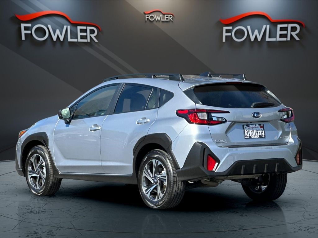 Ice Silver Metallic 2025 Subaru Crosstrek Premium AWD Lineartronic CVT 2.5L 4-Cylinder DOHC 16V 10-Way Power Driver's Seat, 4-Wheel Disc Brakes, 6 Speakers, ABS brakes, Air Conditioning, All-Weather Floor Liners, All-Weather Package, Alloy wheels, AM/FM radio: SiriusXM, Anti-whiplash front head restraints, Auto High-beam Headlights, Auto-Dimming Exterior Mirror w/Approach Light, Auto-Dimming Mirror w/Compass & HomeLink, Automatic temperature control, Blind Spot Detection (BSD), Brake assist, BSD/RCTA & All Wthr Pkg & Pwr Dr. Seat & Pwr Moonrf, Bumpers: body-color, Cargo Cover, Cloth Upholstery, Crosstrek Mirror Package, Driver door bin, Driver vanity mirror, Dual front impact airbags, Dual front side impact airbags, Dual-Mode Heated Front Seats, Electronic Stability Control, Emergency communication system, Exterior Parking Camera Rear, Four wheel independent suspension, Front anti-roll bar, Front Bucket Seats, Front Center Armrest, Front dual zone A/C, Front fog lights, Front reading lights, Fully automatic headlights, Heated Power Exterior Mirrors, Illuminated entry, Knee airbag, LED Upgrade, Low tire pressure warning, Occupant sensing airbag, Outside temperature display, Overhead airbag, Overhead console, Panic alarm, Passenger door bin, Passenger vanity mirror, Power door mirrors, Power Moonroof, Power steering, Power windows, Radio data system, Radio: Subaru 11.6" Multimedia Plus System, Rear anti-roll bar, Rear Bumper Cover, Rear Cross-Traffic Alert (RCTA) System, Rear seat center armrest, Rear window defroster, Rear window wiper, Remote keyless entry, Security system, Speed control, Speed-sensing steering, Split folding rear seat, Spoiler, Steering wheel mounted audio controls, Tachometer, Telescoping steering wheel, Tilt steering wheel, Traction control, Trip computer, Turn signal indicator mirrors, Variably intermittent wipers, Wheels: 17" x 7.0" J Machine Finish Aluminum-Alloy, Windshield De-Icer Wipers.