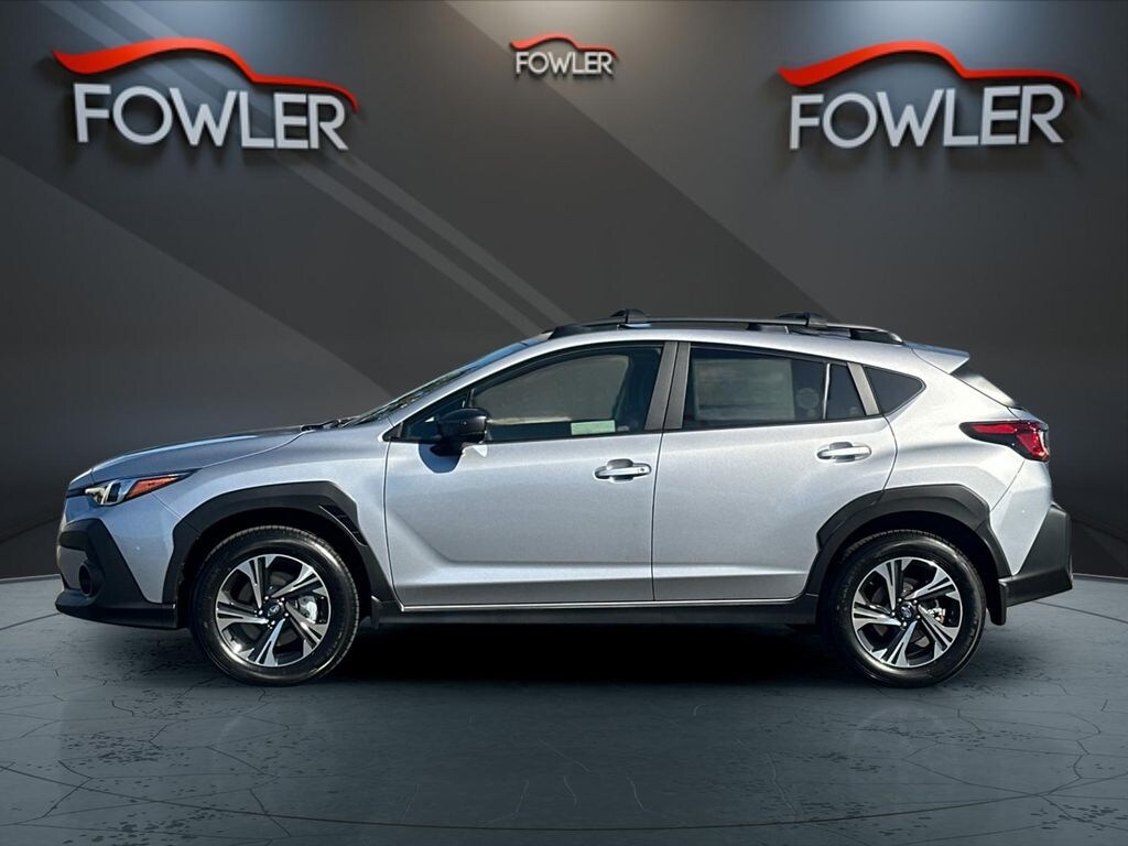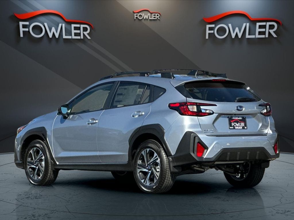 Ice Silver Metallic 2025 Subaru Crosstrek Premium AWD Lineartronic CVT 2.5L 4-Cylinder DOHC 16V 4-Wheel Disc Brakes, 6 Speakers, ABS brakes, Air Conditioning, Alloy wheels, AM/FM radio: SiriusXM, Anti-whiplash front head restraints, Auto High-beam Headlights, Automatic temperature control, Brake assist, Bumpers: body-color, Cloth Upholstery, Driver door bin, Driver vanity mirror, Dual front impact airbags, Dual front side impact airbags, Electronic Stability Control, Emergency communication system, Exterior Parking Camera Rear, Four wheel independent suspension, Front anti-roll bar, Front Bucket Seats, Front Center Armrest, Front dual zone A/C, Front fog lights, Front reading lights, Fully automatic headlights, Illuminated entry, Knee airbag, Low tire pressure warning, Occupant sensing airbag, Outside temperature display, Overhead airbag, Overhead console, Panic alarm, Passenger door bin, Passenger vanity mirror, Power door mirrors, Power steering, Power windows, Radio data system, Radio: Subaru 11.6" Multimedia Plus System, Rear anti-roll bar, Rear seat center armrest, Rear window defroster, Rear window wiper, Remote keyless entry, Security system, Speed control, Speed-sensing steering, Split folding rear seat, Spoiler, Steering wheel mounted audio controls, Tachometer, Telescoping steering wheel, Tilt steering wheel, Traction control, Trip computer, Turn signal indicator mirrors, Variably intermittent wipers, Wheels: 17" x 7.0" J Machine Finish Aluminum-Alloy.