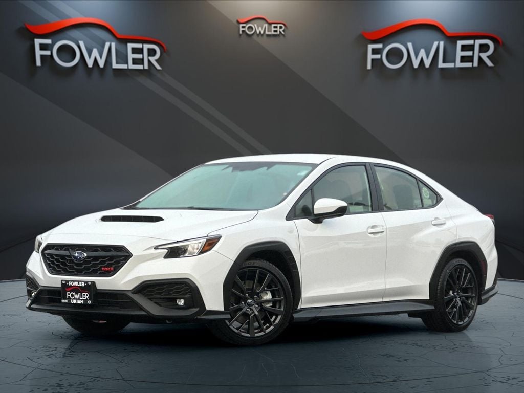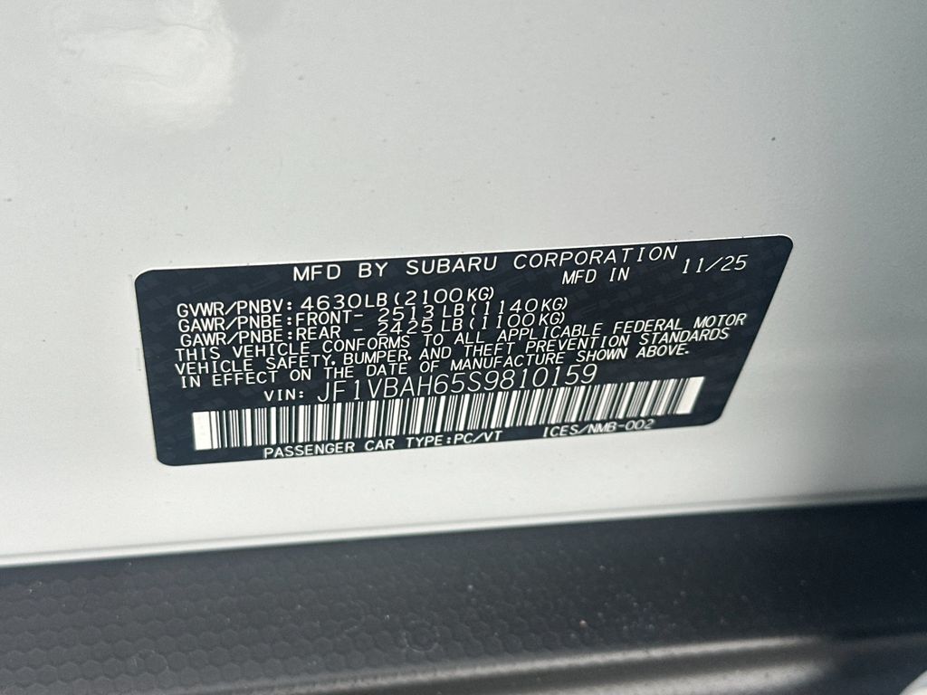 Ceramic White 2025 Subaru WRX Premium AWD 6-Speed Manual 2.4L DOHC 4-Wheel Disc Brakes, 6 Speakers, ABS brakes, Air Conditioning, Alloy wheels, AM/FM radio: SiriusXM, Auto High-beam Headlights, Automatic temperature control, Brake assist, Bumpers: body-color, Center Armrest Extension, Driver door bin, Driver vanity mirror, Dual front impact airbags, Dual front side impact airbags, Electronic Stability Control, Emergency communication system, Exterior Parking Camera Rear, Four wheel independent suspension, Front anti-roll bar, Front Bucket Seats, Front Center Armrest, Front dual zone A/C, Front fog lights, Front reading lights, Fully automatic headlights, Heated door mirrors, Heated front seats, Illuminated entry, Knee airbag, Leather Shift Knob, Leather steering wheel, LED Upgrade, Low tire pressure warning, Occupant sensing airbag, Outside temperature display, Overhead airbag, Overhead console, Panic alarm, Passenger door bin, Passenger vanity mirror, Performance Design Heated Front Bucket Seats, Power door mirrors, Power steering, Power windows, Premium Cloth Upholstery w/Red Stitching, Radio data system, Radio: Subaru 11.6" Multimedia Plus System, Rear anti-roll bar, Rear seat center armrest, Rear window defroster, Remote keyless entry, Security system, Speed control, Speed-sensing steering, Splash Guards, Split folding rear seat, Spoiler, Sport steering wheel, Standard Model (6MT), Steering wheel mounted audio controls, STI Short Throw Shifter (WRX), Tachometer, Telescoping steering wheel, Tilt steering wheel, Traction control, Trip computer, Variably intermittent wipers, Wheels: 18" x 8.5" Dark Gray Finish Alum Alloy.