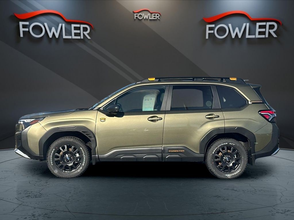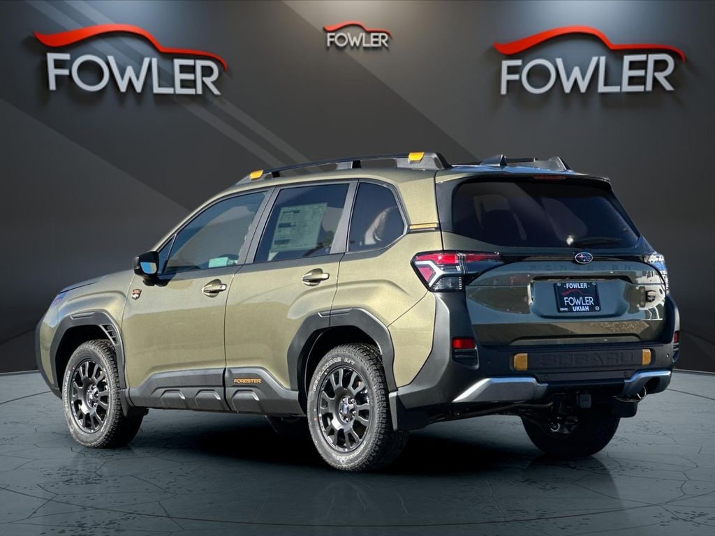 Autumn Green Metallic 2026 Subaru Forester Wilderness AWD Lineartronic CVT 2.5L 4-Cylinder DOHC 16V 4-Wheel Disc Brakes, 6 Speakers, ABS brakes, Air Conditioning, Alloy wheels, AM/FM radio: SiriusXM with 360L, Anti-whiplash front head restraints, Auto High-beam Headlights, Auto-Dimming Mirror with Compass and HomeLink, Automatic temperature control, Brake assist, Bumpers: body-color, Driver door bin, Driver vanity mirror, Dual front impact airbags, Dual front side impact airbags, Electronic Stability Control, Emergency communication system: MySubaru Companion (5-years free), Exterior Parking Camera Rear, Four wheel independent suspension, Front anti-roll bar, Front Bucket Seats, Front Center Armrest, Front dual zone A/C, Front fog lights, Front reading lights, Fully automatic headlights, Harman/Kardon Speaker System and Power Rear Gate, Heated door mirrors, Heated Front Bucket Seats, Heated front seats, Illuminated entry, Knee airbag, LED Upgrade, Low tire pressure warning, Occupant sensing airbag, Outside temperature display, Overhead airbag, Overhead console, Panic alarm, Passenger door bin, Passenger vanity mirror, Power door mirrors, Power driver seat, Power moonroof: Panoramic, Power Rear Gate, Power steering, Power windows, Radio data system, Radio: Subaru 11.6" Multimedia Navigation System, Radio: Subaru 11.6" Multimedia Plus System, Rain sensing wipers, Rear anti-roll bar, Rear Bumper Cover, Rear seat center armrest, Rear Seatback Protector, Rear window defroster, Rear window wiper, Remote keyless entry, Security system, Speed control, Speed-sensing steering, Splash Guards, Split folding rear seat, Spoiler, Steering wheel mounted audio controls, Tachometer, Telescoping steering wheel, Textured StarTex Upholstery, Tilt steering wheel, Traction control, Trailer Hitch - Wilderness, Trip computer, Turn signal indicator mirrors, Variably intermittent wipers, Wheels: 17" x 7.0 J Matte Black Finish Aluminum-Alloy.