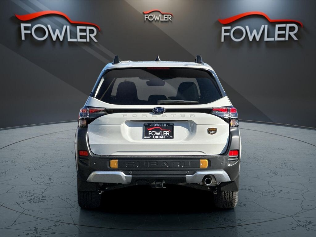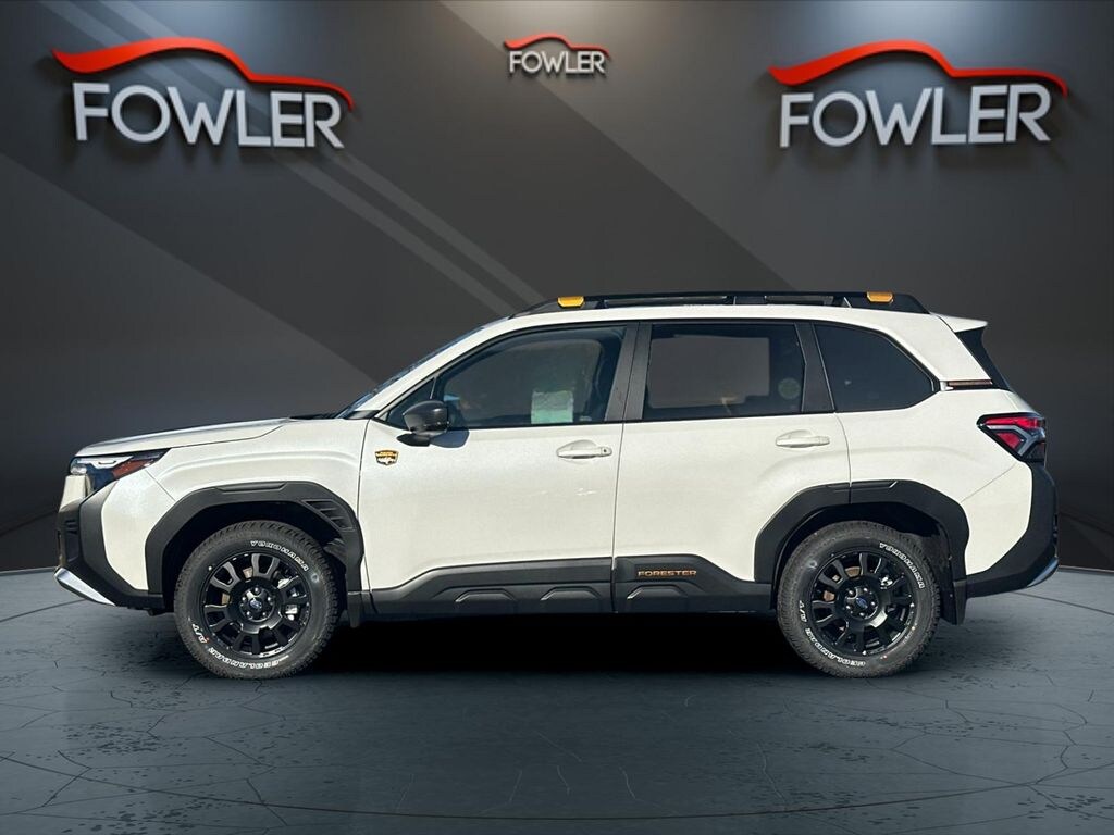 Crystal White Pearl 2026 Subaru Forester Wilderness AWD Lineartronic CVT 2.5L 4-Cylinder DOHC 16V 4-Wheel Disc Brakes, 6 Speakers, ABS brakes, Air Conditioning, Alloy wheels, AM/FM radio: SiriusXM with 360L, Anti-whiplash front head restraints, Auto High-beam Headlights, Auto-Dimming Mirror with Compass and HomeLink, Automatic temperature control, Brake assist, Bumpers: body-color, Driver door bin, Driver vanity mirror, Dual front impact airbags, Dual front side impact airbags, Electronic Stability Control, Emergency communication system: MySubaru Companion (5-years free), Exterior Parking Camera Rear, Four wheel independent suspension, Front anti-roll bar, Front Bucket Seats, Front Center Armrest, Front dual zone A/C, Front fog lights, Front reading lights, Fully automatic headlights, Harman/Kardon Speaker System and Power Rear Gate, Heated door mirrors, Heated Front Bucket Seats, Heated front seats, Illuminated entry, Knee airbag, LED Upgrade, Low tire pressure warning, Occupant sensing airbag, Outside temperature display, Overhead airbag, Overhead console, Panic alarm, Passenger door bin, Passenger vanity mirror, Power door mirrors, Power driver seat, Power moonroof: Panoramic, Power Rear Gate, Power steering, Power windows, Radio data system, Radio: Subaru 11.6" Multimedia Navigation System, Radio: Subaru 11.6" Multimedia Plus System, Rain sensing wipers, Rear anti-roll bar, Rear Bumper Cover, Rear seat center armrest, Rear Seatback Protector, Rear window defroster, Rear window wiper, Remote keyless entry, Security system, Speed control, Speed-sensing steering, Splash Guards, Split folding rear seat, Spoiler, Steering wheel mounted audio controls, Tachometer, Telescoping steering wheel, Textured StarTex Upholstery, Tilt steering wheel, Traction control, Trailer Hitch - Wilderness, Trip computer, Turn signal indicator mirrors, Variably intermittent wipers, Wheels: 17" x 7.0 J Matte Black Finish Aluminum-Alloy.