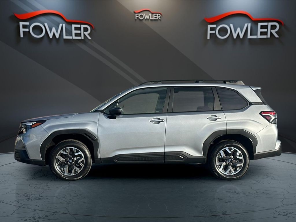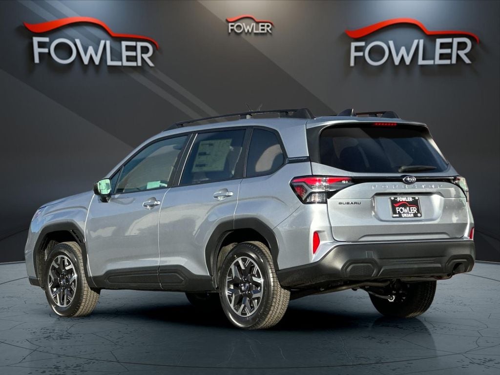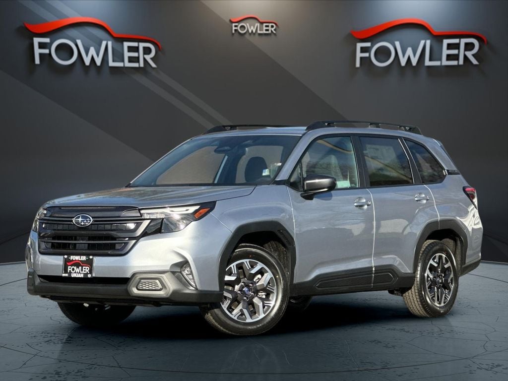Ice Silver Metallic 2026 Subaru Forester Premium AWD Lineartronic CVT 2.5L 4-Cylinder DOHC 16V 4-Wheel Disc Brakes, 6 Speakers, ABS brakes, Air Conditioning, Alloy wheels, AM/FM radio: SiriusXM with 360L, Anti-whiplash front head restraints, Auto High-beam Headlights, Auto-Dimming Mirror with Compass and HomeLink, Automatic temperature control, Brake assist, Bumpers: body-color, Driver door bin, Driver vanity mirror, Dual front impact airbags, Dual front side impact airbags, Electronic Stability Control, Emergency communication system: MySubaru Companion (5-years free), Exterior Parking Camera Rear, Four wheel independent suspension, Front anti-roll bar, Front Bucket Seats, Front Center Armrest, Front dual zone A/C, Front fog lights, Front reading lights, Fully automatic headlights, Heated door mirrors, Heated Front Bucket Seats, Heated front seats, Illuminated entry, Knee airbag, Leather steering wheel, LED Upgrade, Low tire pressure warning, Occupant sensing airbag, Outside temperature display, Overhead airbag, Overhead console, Panic alarm, Passenger door bin, Passenger vanity mirror, Power door mirrors, Power driver seat, Power moonroof: Panoramic, Power steering, Power windows, Premium Textured Cloth Upholstery, Radio data system, Radio: Subaru 11.6" Multimedia Plus System, Rear anti-roll bar, Rear Bumper Cover, Rear seat center armrest, Rear Seatback Protector, Rear window defroster, Rear window wiper, Remote keyless entry, Security system, Speed control, Speed-sensing steering, Split folding rear seat, Spoiler, Standard Model, Steering wheel mounted audio controls, Tachometer, Telescoping steering wheel, Tilt steering wheel, Traction control, Trip computer, Variably intermittent wipers, Wheels: 17" x 7.0 J Dark Metallic Aluminum-Alloy.