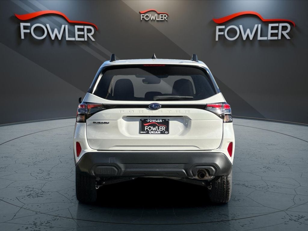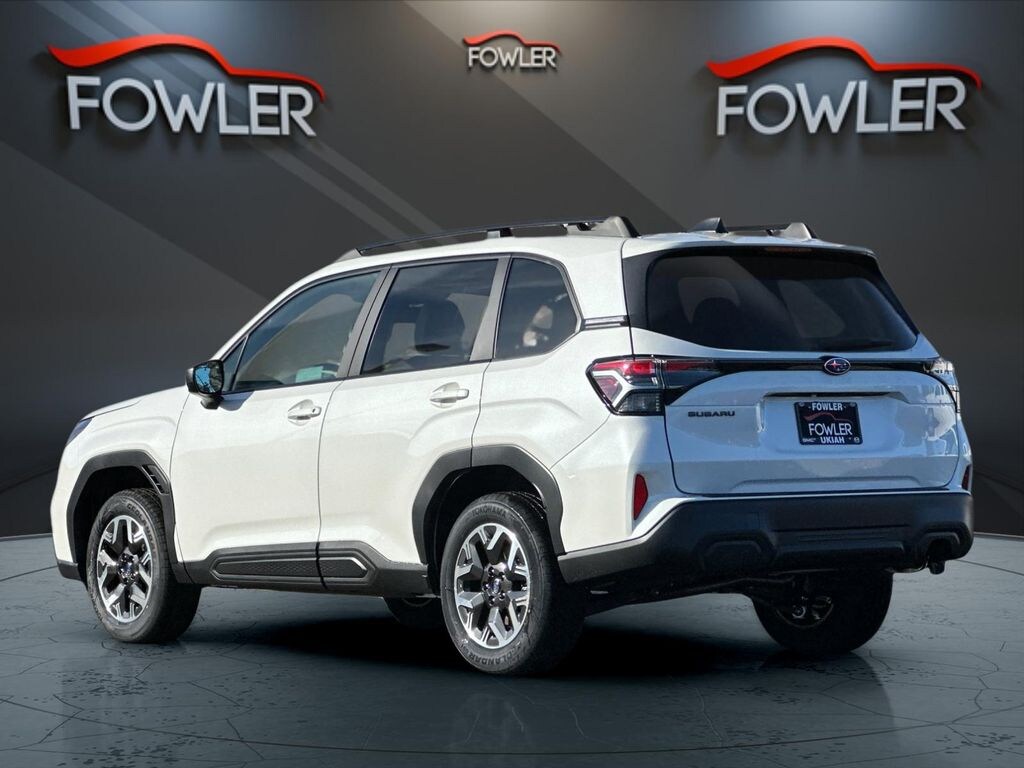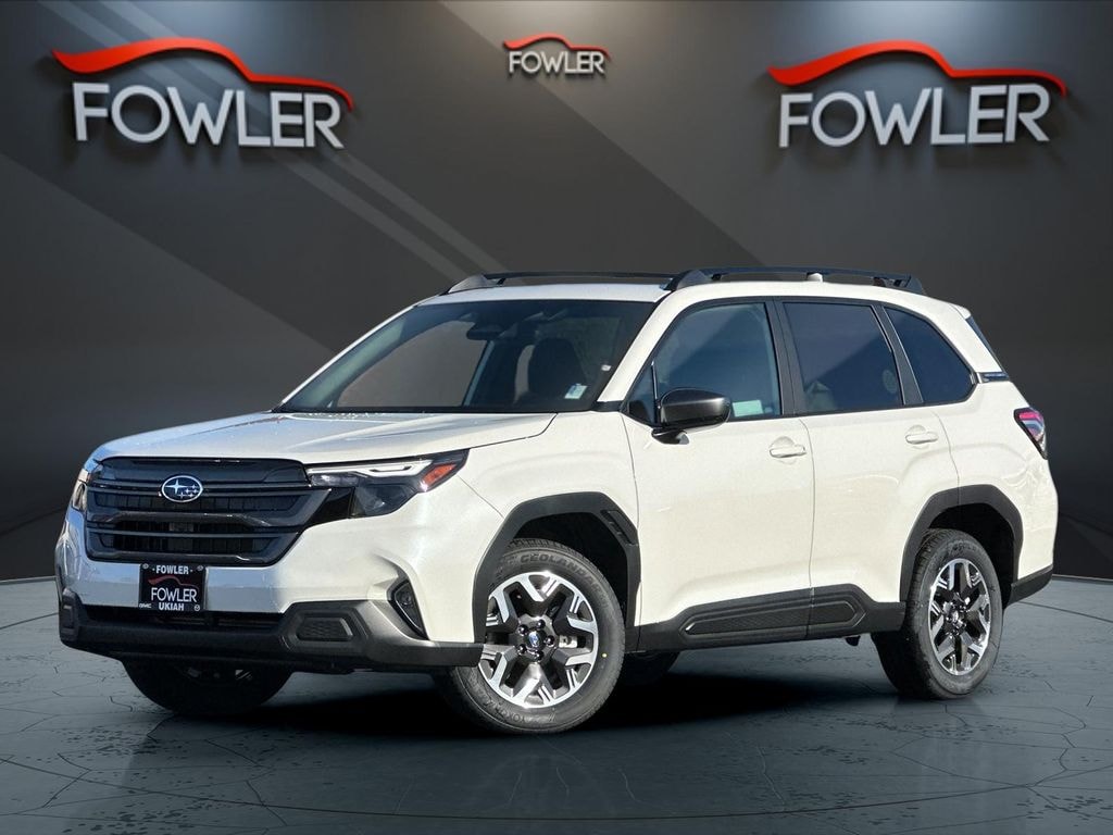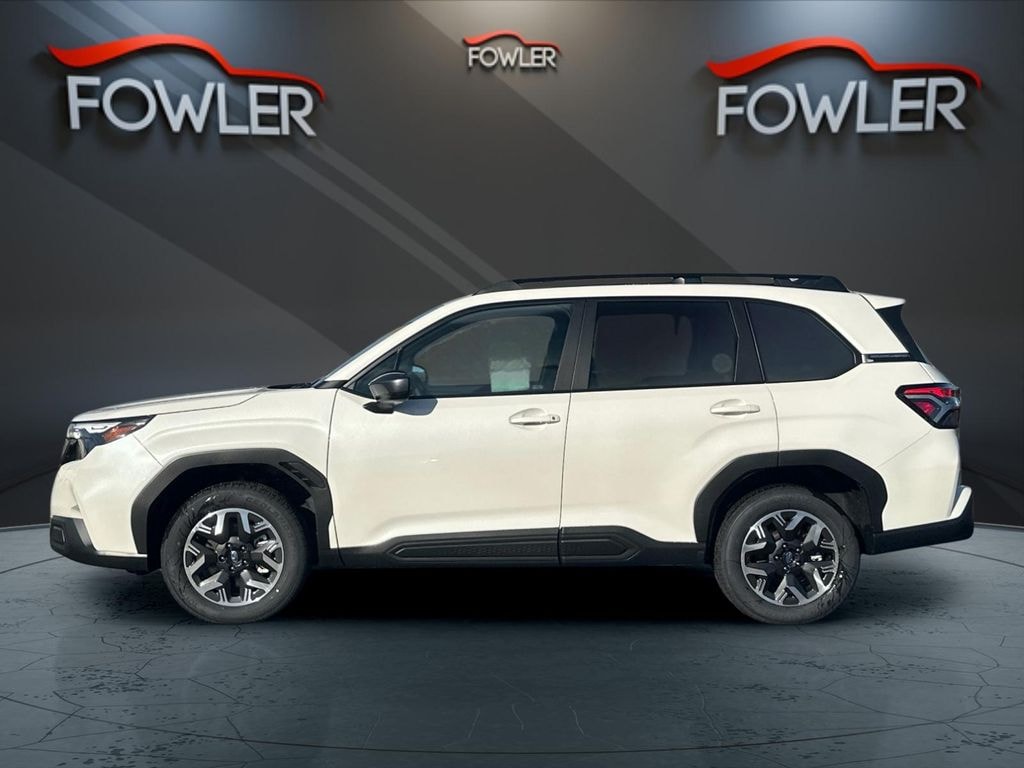 Crystal White Pearl 2026 Subaru Forester Premium AWD Lineartronic CVT 2.5L 4-Cylinder DOHC 16V 4-Wheel Disc Brakes, 6 Speakers, ABS brakes, Air Conditioning, Alloy wheels, AM/FM radio: SiriusXM with 360L, Anti-whiplash front head restraints, Auto High-beam Headlights, Auto-Dimming Mirror with Compass and HomeLink, Automatic temperature control, Brake assist, Bumpers: body-color, Driver door bin, Driver vanity mirror, Dual front impact airbags, Dual front side impact airbags, Electronic Stability Control, Emergency communication system: MySubaru Companion (5-years free), Exterior Parking Camera Rear, Four wheel independent suspension, Front anti-roll bar, Front Bucket Seats, Front Center Armrest, Front dual zone A/C, Front fog lights, Front reading lights, Fully automatic headlights, Heated door mirrors, Heated Front Bucket Seats, Heated front seats, Illuminated entry, Knee airbag, Leather steering wheel, LED Upgrade, Low tire pressure warning, Occupant sensing airbag, Outside temperature display, Overhead airbag, Overhead console, Panic alarm, Passenger door bin, Passenger vanity mirror, Power door mirrors, Power driver seat, Power moonroof: Panoramic, Power steering, Power windows, Premium Textured Cloth Upholstery, Radio data system, Radio: Subaru 11.6" Multimedia Plus System, Rear anti-roll bar, Rear Bumper Cover, Rear seat center armrest, Rear Seatback Protector, Rear window defroster, Rear window wiper, Remote keyless entry, Security system, Speed control, Speed-sensing steering, Split folding rear seat, Spoiler, Standard Model, Steering wheel mounted audio controls, Tachometer, Telescoping steering wheel, Tilt steering wheel, Traction control, Trip computer, Variably intermittent wipers, Wheels: 17" x 7.0 J Dark Metallic Aluminum-Alloy.