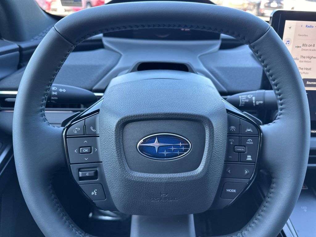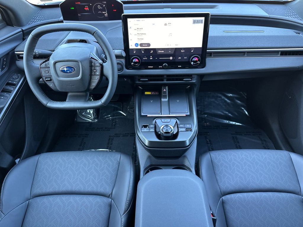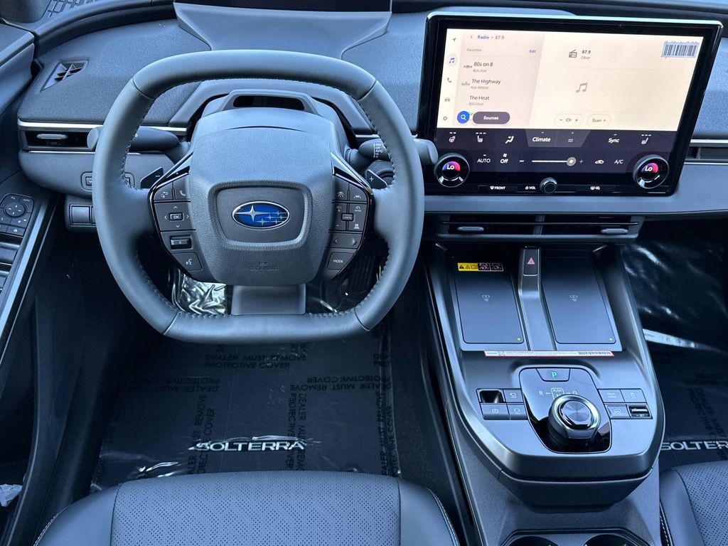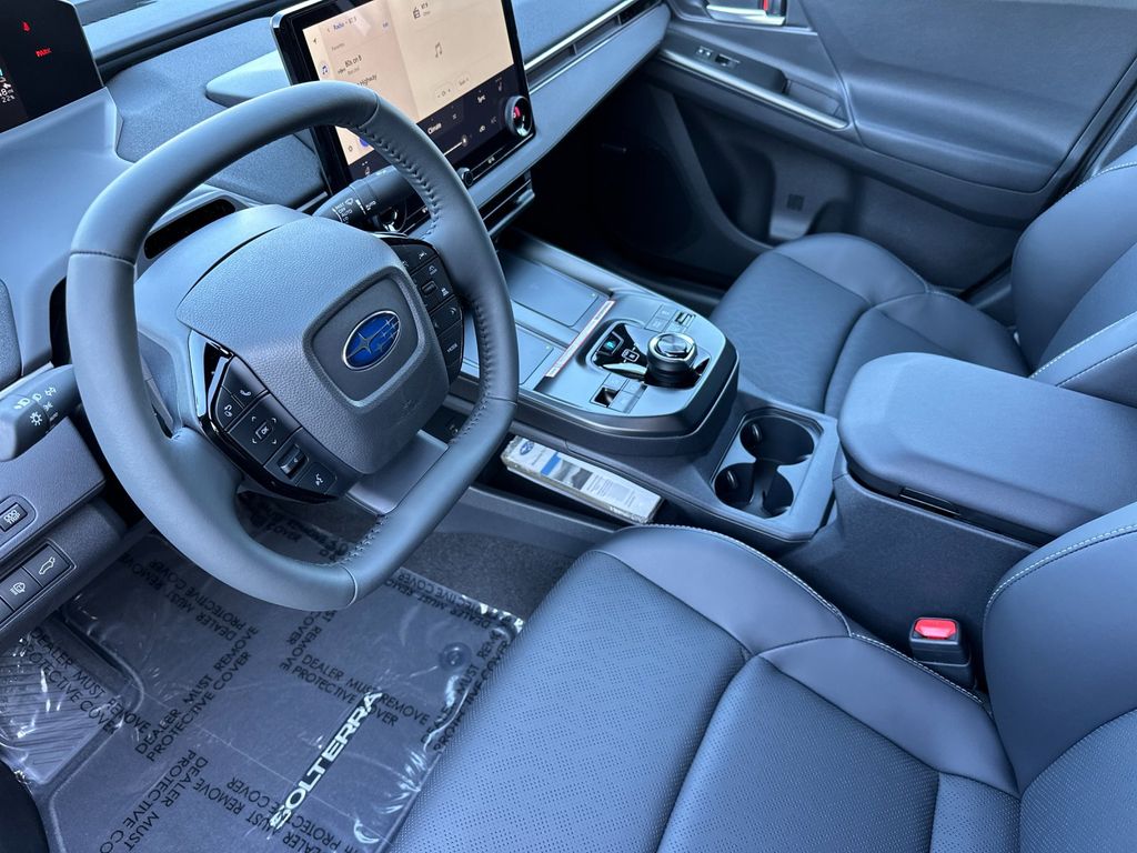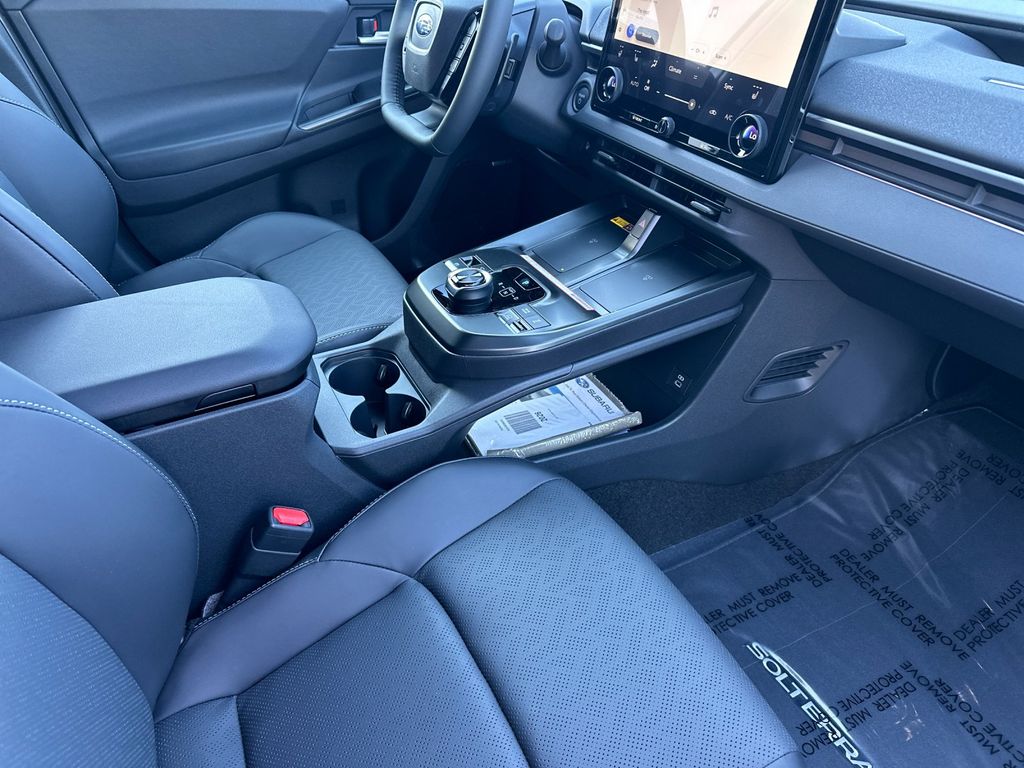 Carbon 2026 Subaru Solterra AWD 1-Speed Automatic Electric Motor 4-Wheel Disc Brakes, ABS brakes, Air Conditioning, Alloy wheels, AM/FM radio: SiriusXM, Apple CarPlay & Android Auto, Auto High-beam Headlights, Auto-dimming Rear-View mirror, Automatic temperature control, Brake assist, Bumpers: body-color, Driver door bin, Driver vanity mirror, Dual front impact airbags, Dual front side impact airbags, Electronic Stability Control, Emergency communication system, Exterior Parking Camera Rear, Four wheel independent suspension, Front anti-roll bar, Front Bucket Seats, Front Center Armrest, Front dual zone A/C, Front reading lights, Fully automatic headlights, Garage door transmitter: HomeLink, Headlight cleaning, Heated door mirrors, Heated front seats, Illuminated entry, Knee airbag, Leather steering wheel, Low tire pressure warning, Navigation System, Occupant sensing airbag, Outside temperature display, Overhead airbag, Overhead console, Panic alarm, Passenger door bin, Passenger vanity mirror, Power door mirrors, Power driver seat, Power Liftgate, Power steering, Power windows, Radio data system, Radio: : Subaru 14" Multimedia System, Rain sensing wipers, Rear anti-roll bar, Rear reading lights, Rear seat center armrest, Rear window defroster, Remote keyless entry, Security system, Speed control, Speed-sensing steering, Split folding rear seat, Spoiler, Steering wheel mounted audio controls, Telescoping steering wheel, Tilt steering wheel, Traction control, Trip computer, Turn signal indicator mirrors, Variably intermittent wipers.