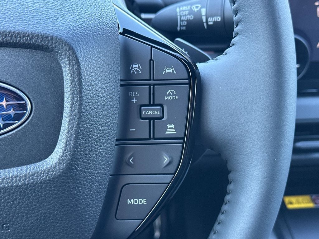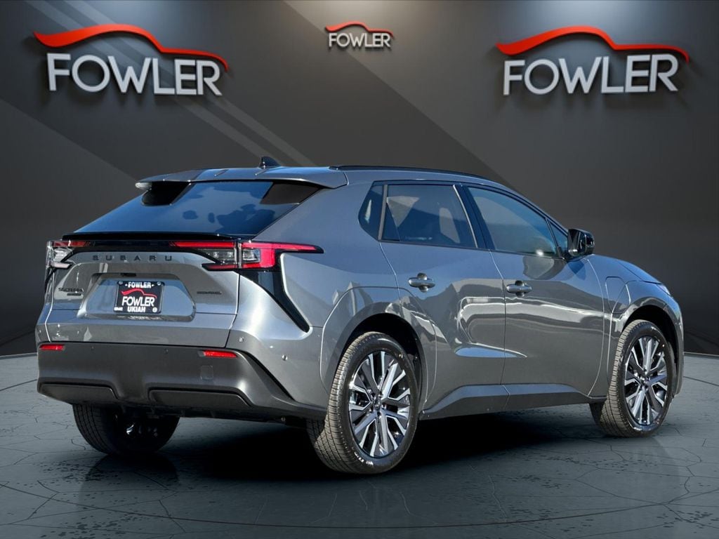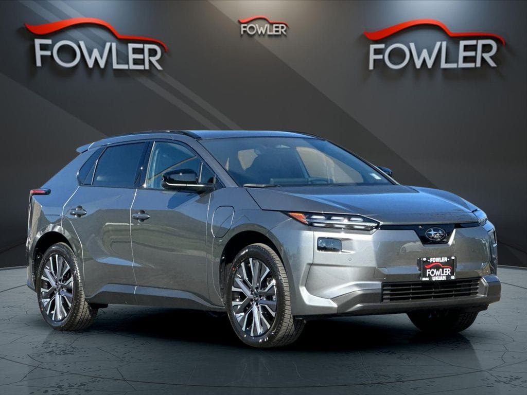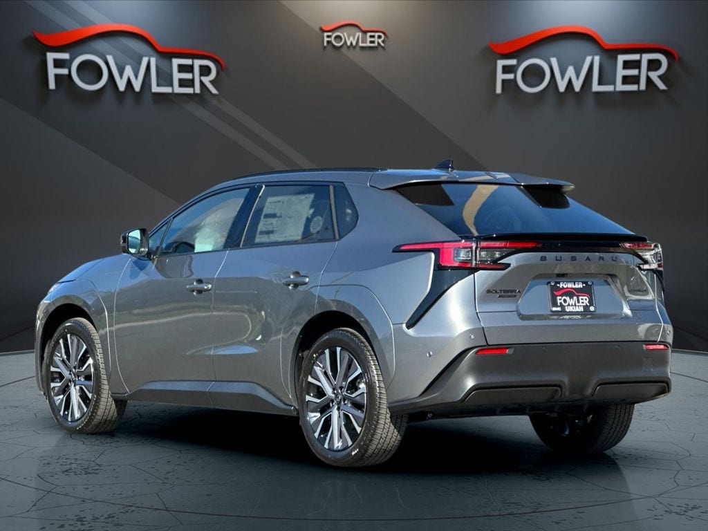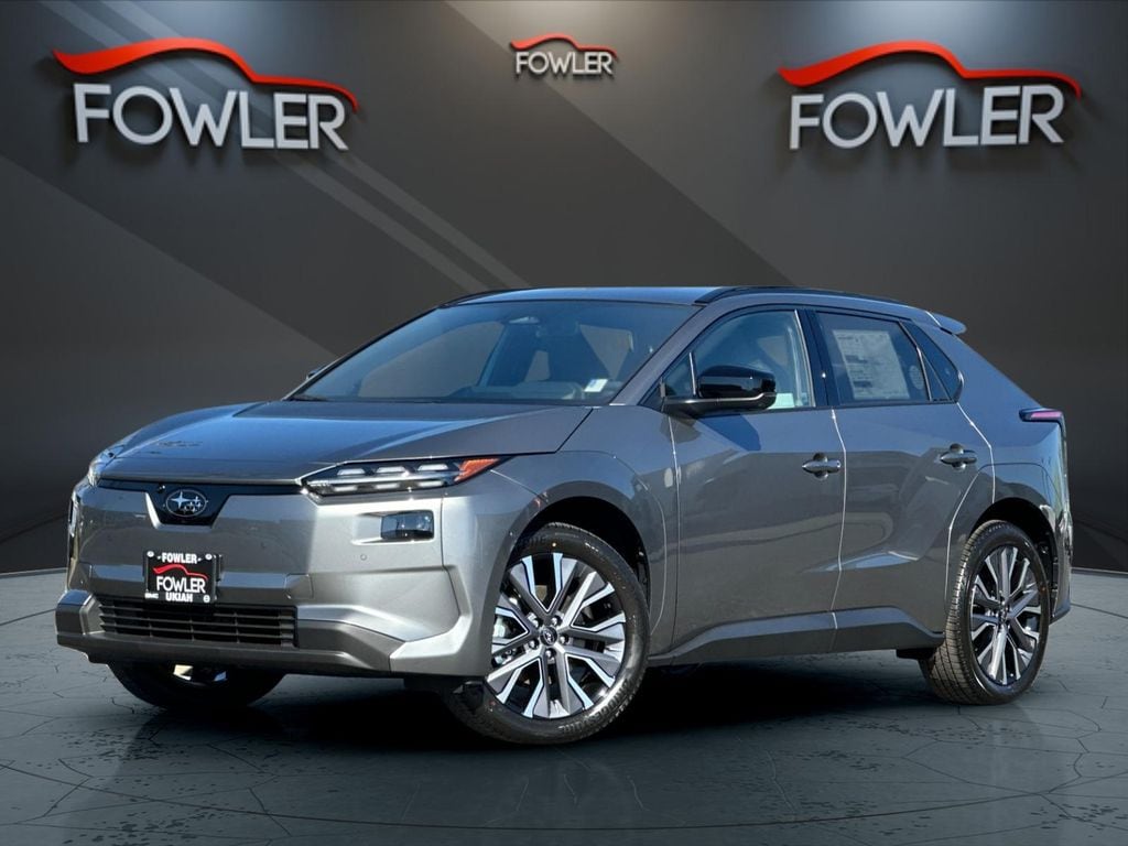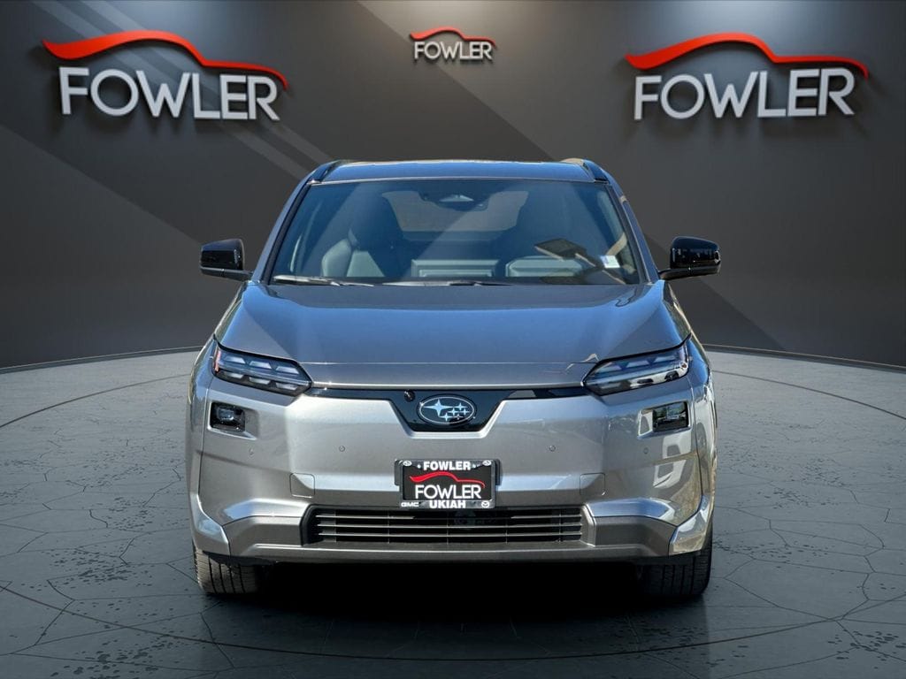 Carbon 2026 Subaru Solterra AWD 1-Speed Automatic Electric Motor 4-Wheel Disc Brakes, ABS brakes, Air Conditioning, Alloy wheels, AM/FM radio: SiriusXM, Apple CarPlay & Android Auto, Auto High-beam Headlights, Auto-dimming Rear-View mirror, Automatic temperature control, Brake assist, Bumpers: body-color, Driver door bin, Driver vanity mirror, Dual front impact airbags, Dual front side impact airbags, Electronic Stability Control, Emergency communication system, Exterior Parking Camera Rear, Four wheel independent suspension, Front anti-roll bar, Front Bucket Seats, Front Center Armrest, Front dual zone A/C, Front reading lights, Fully automatic headlights, Garage door transmitter: HomeLink, Headlight cleaning, Heated door mirrors, Heated front seats, Illuminated entry, Knee airbag, Leather steering wheel, Low tire pressure warning, Navigation System, Occupant sensing airbag, Outside temperature display, Overhead airbag, Overhead console, Panic alarm, Passenger door bin, Passenger vanity mirror, Power door mirrors, Power driver seat, Power Liftgate, Power steering, Power windows, Radio data system, Radio: : Subaru 14" Multimedia System, Rain sensing wipers, Rear anti-roll bar, Rear reading lights, Rear seat center armrest, Rear window defroster, Remote keyless entry, Security system, Speed control, Speed-sensing steering, Split folding rear seat, Spoiler, Steering wheel mounted audio controls, Telescoping steering wheel, Tilt steering wheel, Traction control, Trip computer, Turn signal indicator mirrors, Variably intermittent wipers.
