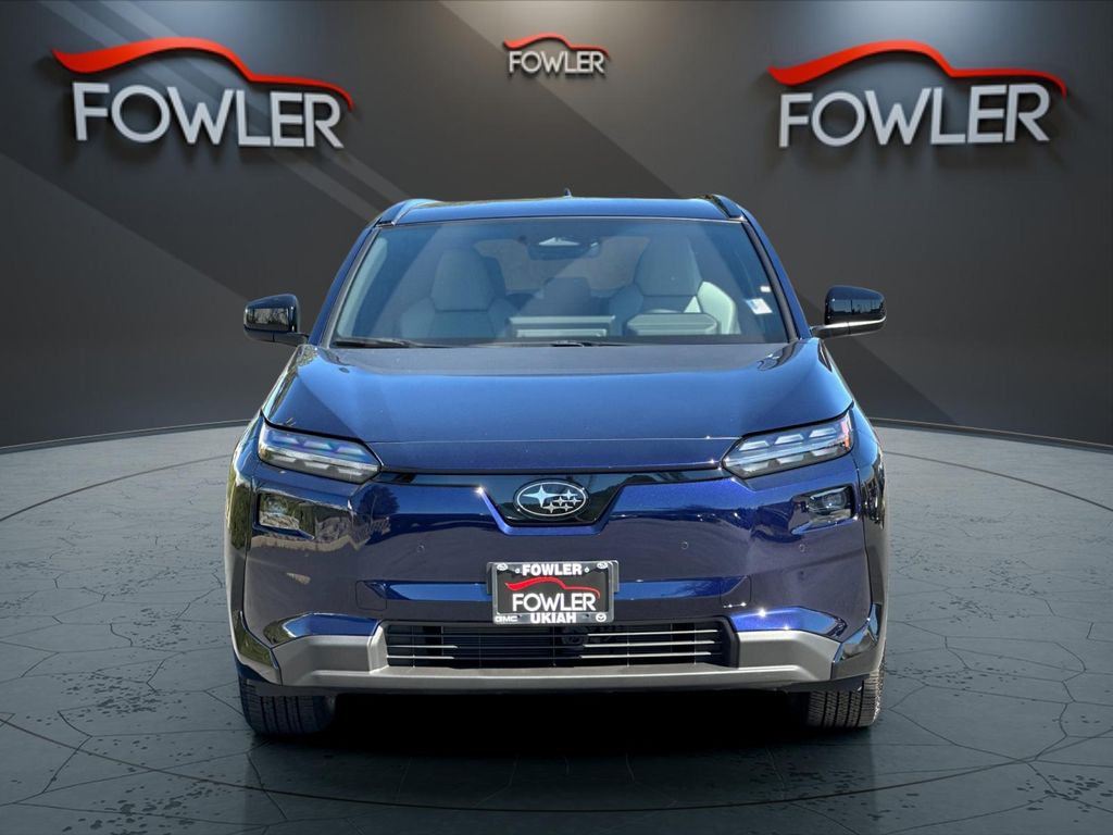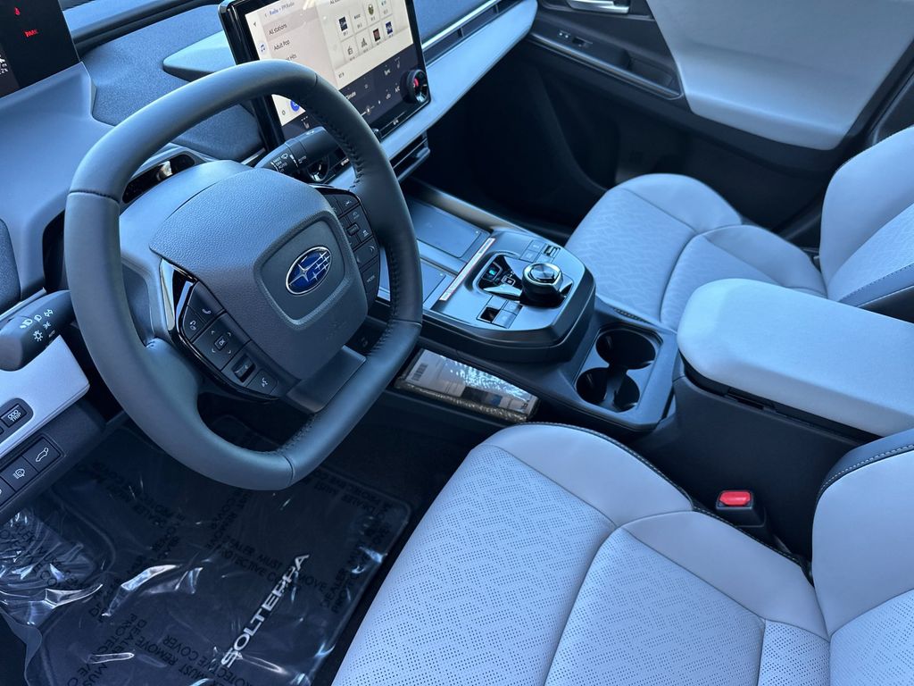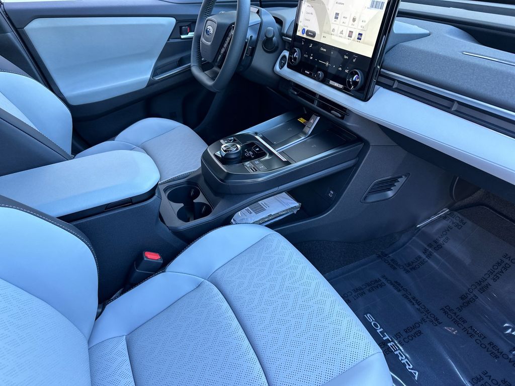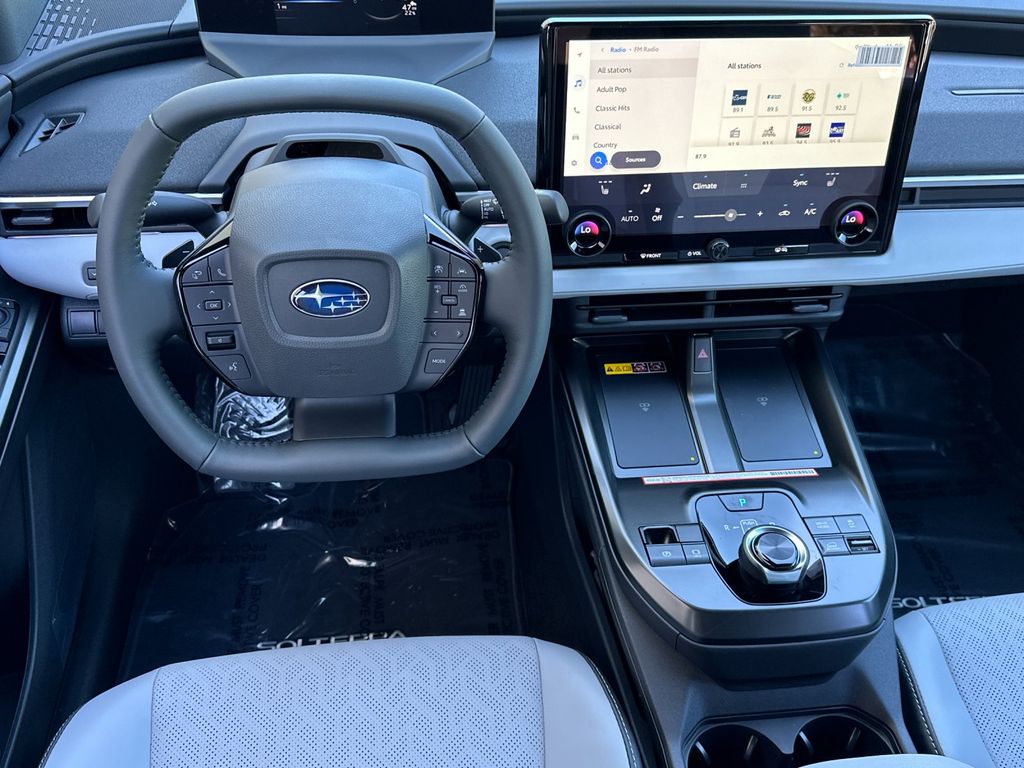 Midnight 2026 Subaru Solterra AWD 1-Speed Automatic Electric Motor 4-Wheel Disc Brakes, ABS brakes, Air Conditioning, Alloy wheels, AM/FM radio: SiriusXM, Apple CarPlay & Android Auto, Auto High-beam Headlights, Auto-dimming Rear-View mirror, Automatic temperature control, Brake assist, Bumpers: body-color, Driver door bin, Driver vanity mirror, Dual front impact airbags, Dual front side impact airbags, Electronic Stability Control, Emergency communication system, Exterior Parking Camera Rear, Four wheel independent suspension, Front anti-roll bar, Front Bucket Seats, Front Center Armrest, Front dual zone A/C, Front reading lights, Fully automatic headlights, Garage door transmitter: HomeLink, Headlight cleaning, Heated door mirrors, Heated front seats, Illuminated entry, Knee airbag, Leather steering wheel, Low tire pressure warning, Navigation System, Occupant sensing airbag, Outside temperature display, Overhead airbag, Overhead console, Panic alarm, Passenger door bin, Passenger vanity mirror, Power door mirrors, Power driver seat, Power Liftgate, Power steering, Power windows, Radio data system, Radio: : Subaru 14" Multimedia System, Rain sensing wipers, Rear anti-roll bar, Rear reading lights, Rear seat center armrest, Rear window defroster, Remote keyless entry, Security system, Speed control, Speed-sensing steering, Split folding rear seat, Spoiler, Steering wheel mounted audio controls, Telescoping steering wheel, Tilt steering wheel, Traction control, Trip computer, Turn signal indicator mirrors, Variably intermittent wipers.