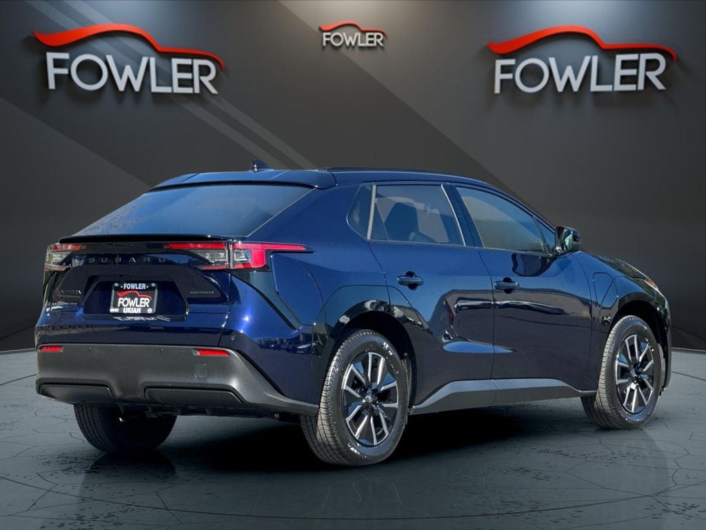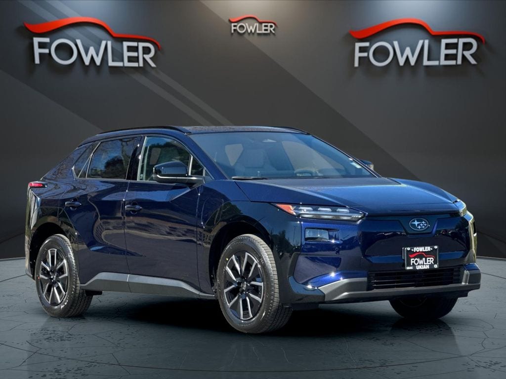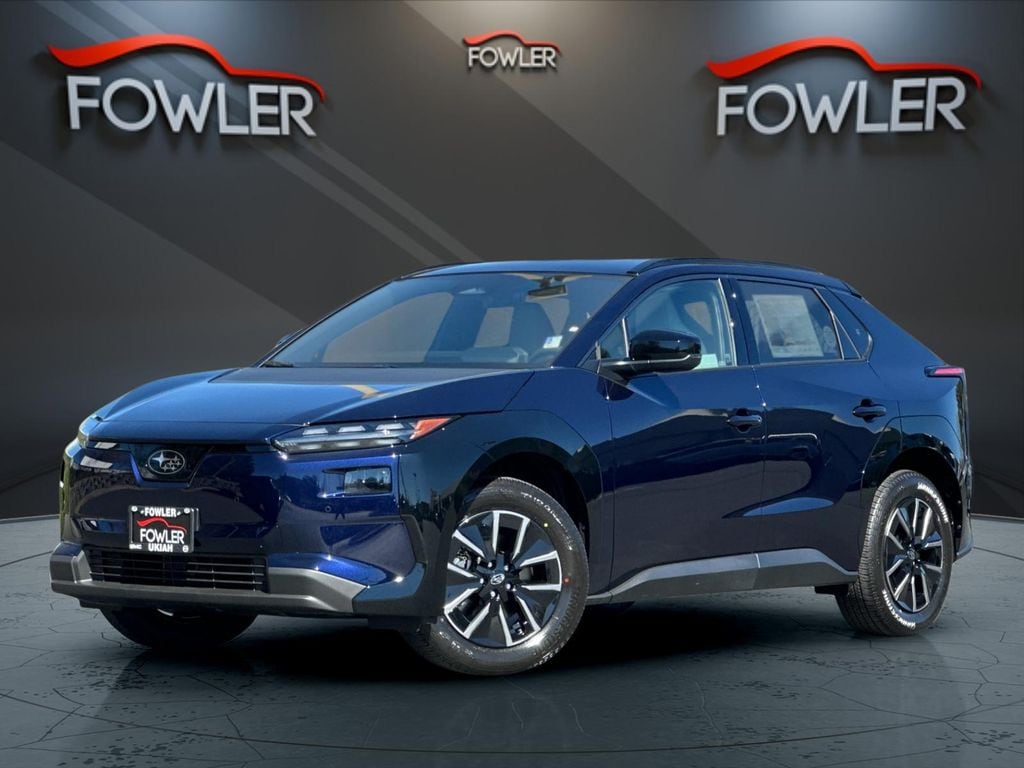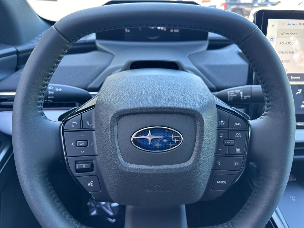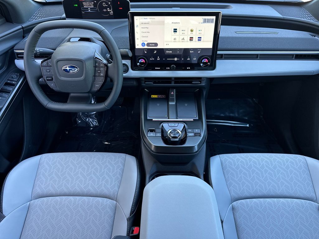 Midnight 2026 Subaru Solterra AWD 1-Speed Automatic Electric Motor 4-Wheel Disc Brakes, ABS brakes, Air Conditioning, Alloy wheels, AM/FM radio: SiriusXM, Apple CarPlay & Android Auto, Auto High-beam Headlights, Auto-dimming Rear-View mirror, Automatic temperature control, Brake assist, Bumpers: body-color, Driver door bin, Driver vanity mirror, Dual front impact airbags, Dual front side impact airbags, Electronic Stability Control, Emergency communication system, Exterior Parking Camera Rear, Four wheel independent suspension, Front anti-roll bar, Front Bucket Seats, Front Center Armrest, Front dual zone A/C, Front reading lights, Fully automatic headlights, Garage door transmitter: HomeLink, Headlight cleaning, Heated door mirrors, Heated front seats, Illuminated entry, Knee airbag, Leather steering wheel, Low tire pressure warning, Navigation System, Occupant sensing airbag, Outside temperature display, Overhead airbag, Overhead console, Panic alarm, Passenger door bin, Passenger vanity mirror, Power door mirrors, Power driver seat, Power Liftgate, Power steering, Power windows, Radio data system, Radio: : Subaru 14" Multimedia System, Rain sensing wipers, Rear anti-roll bar, Rear reading lights, Rear seat center armrest, Rear window defroster, Remote keyless entry, Security system, Speed control, Speed-sensing steering, Split folding rear seat, Spoiler, Steering wheel mounted audio controls, Telescoping steering wheel, Tilt steering wheel, Traction control, Trip computer, Turn signal indicator mirrors, Variably intermittent wipers.