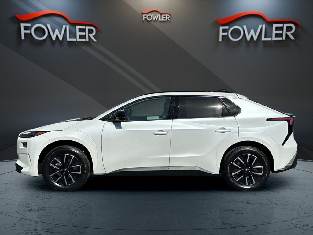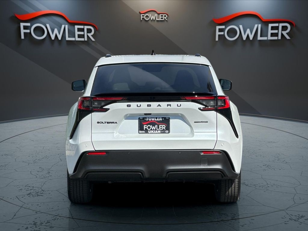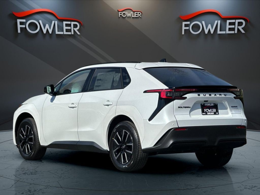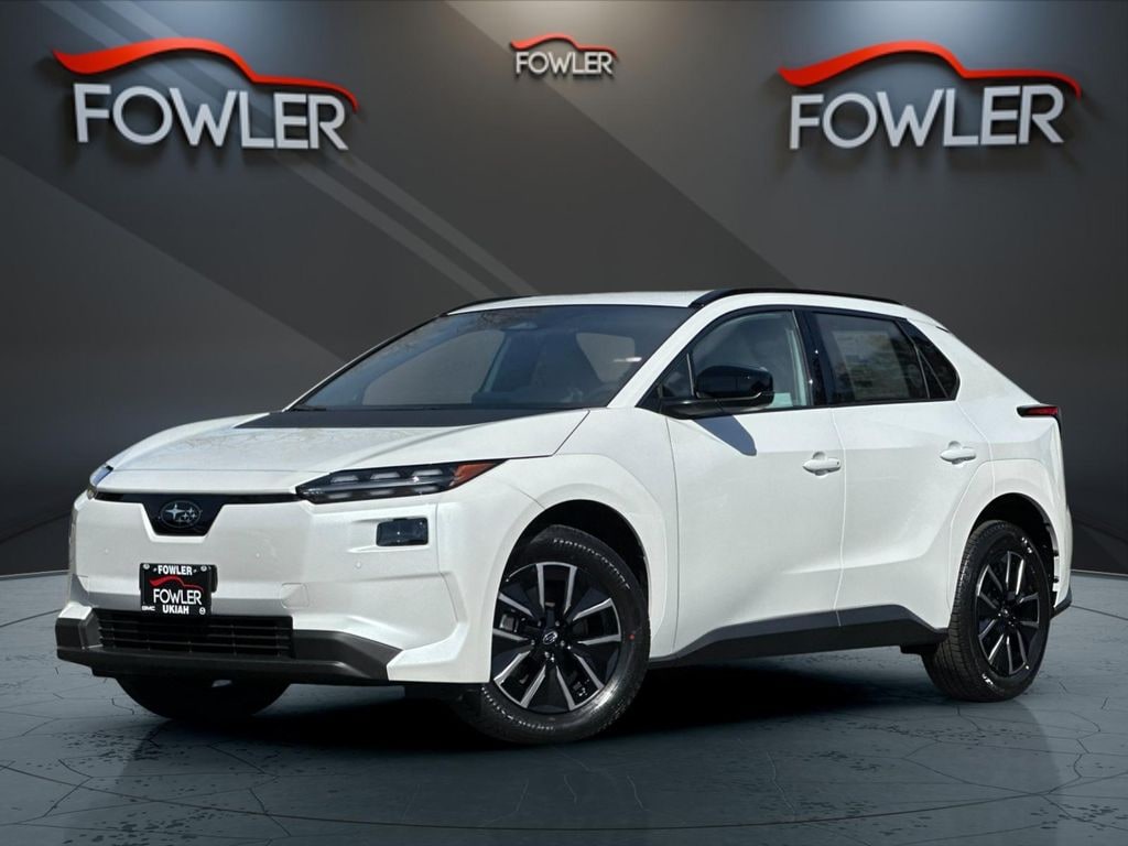 Cosmic White Pearl 2026 Subaru Solterra AWD 1-Speed Automatic Electric Motor 4-Wheel Disc Brakes, ABS brakes, Air Conditioning, Alloy wheels, AM/FM radio: SiriusXM, Apple CarPlay & Android Auto, Auto High-beam Headlights, Auto-dimming Rear-View mirror, Automatic temperature control, Brake assist, Bumpers: body-color, Driver door bin, Driver vanity mirror, Dual front impact airbags, Dual front side impact airbags, Electronic Stability Control, Emergency communication system, Exterior Parking Camera Rear, Four wheel independent suspension, Front anti-roll bar, Front Bucket Seats, Front Center Armrest, Front dual zone A/C, Front reading lights, Fully automatic headlights, Garage door transmitter: HomeLink, Headlight cleaning, Heated door mirrors, Heated front seats, Illuminated entry, Knee airbag, Leather steering wheel, Low tire pressure warning, Navigation System, Occupant sensing airbag, Outside temperature display, Overhead airbag, Overhead console, Panic alarm, Passenger door bin, Passenger vanity mirror, Power door mirrors, Power driver seat, Power Liftgate, Power steering, Power windows, Radio data system, Radio: : Subaru 14" Multimedia System, Rain sensing wipers, Rear anti-roll bar, Rear reading lights, Rear seat center armrest, Rear window defroster, Remote keyless entry, Security system, Speed control, Speed-sensing steering, Split folding rear seat, Spoiler, Steering wheel mounted audio controls, Telescoping steering wheel, Tilt steering wheel, Traction control, Trip computer, Turn signal indicator mirrors, Variably intermittent wipers.