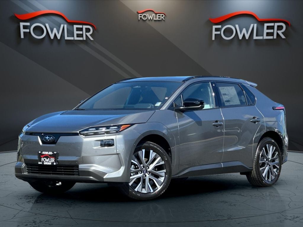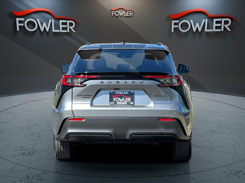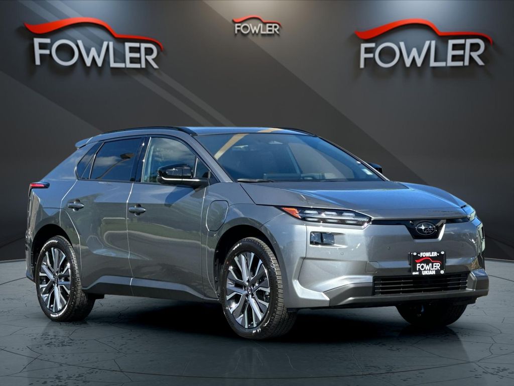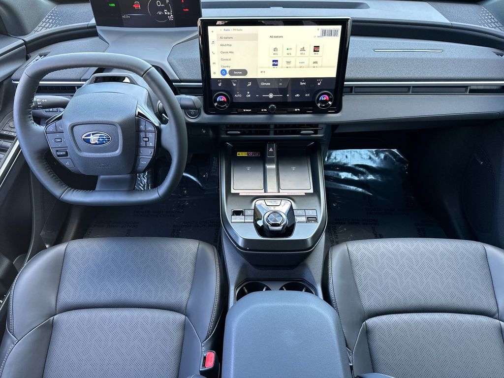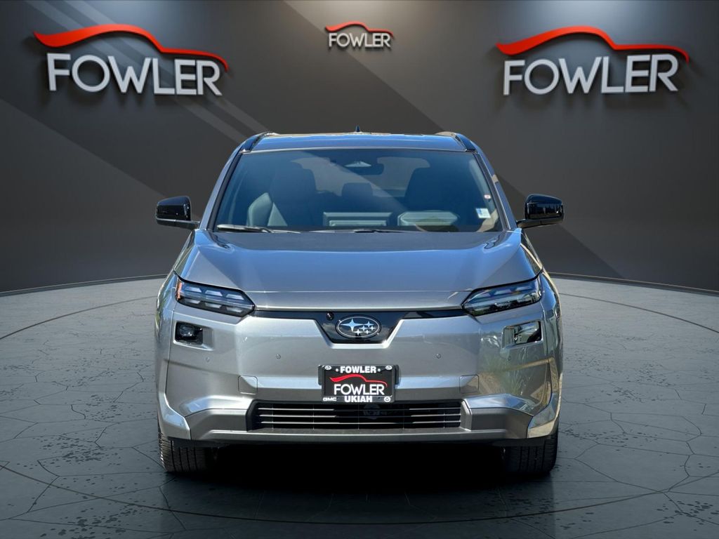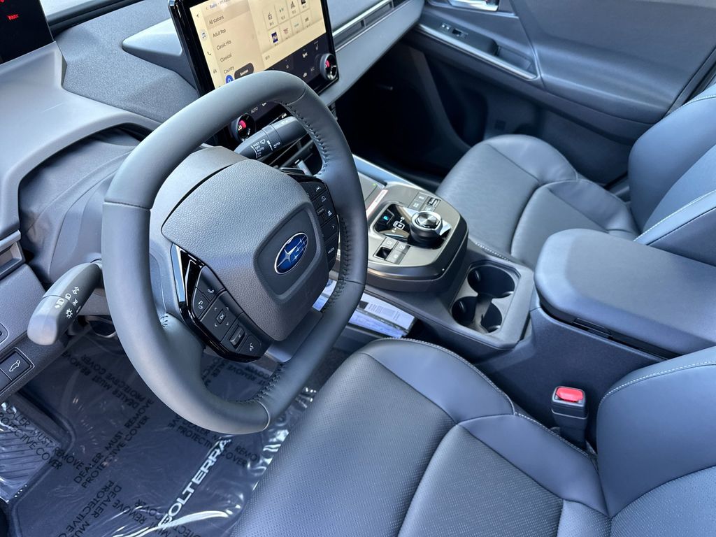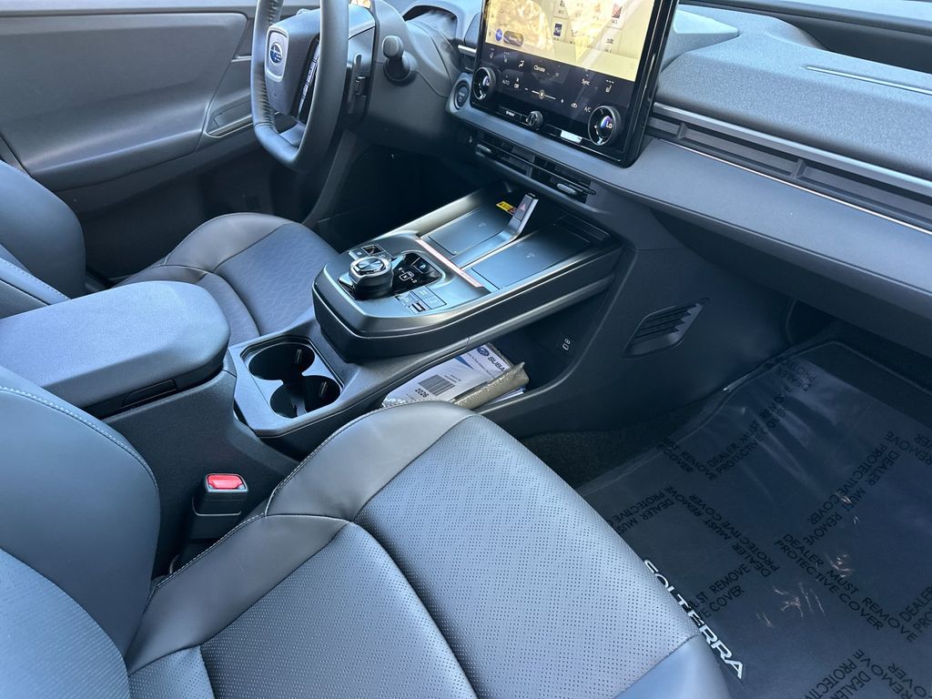 Carbon 2026 Subaru Solterra AWD 1-Speed Automatic Electric Motor 4-Wheel Disc Brakes, ABS brakes, Air Conditioning, Alloy wheels, AM/FM radio: SiriusXM, Apple CarPlay & Android Auto, Auto High-beam Headlights, Auto-dimming Rear-View mirror, Automatic temperature control, Brake assist, Bumpers: body-color, Driver door bin, Driver vanity mirror, Dual front impact airbags, Dual front side impact airbags, Electronic Stability Control, Emergency communication system, Exterior Parking Camera Rear, Four wheel independent suspension, Front anti-roll bar, Front Bucket Seats, Front Center Armrest, Front dual zone A/C, Front reading lights, Fully automatic headlights, Garage door transmitter: HomeLink, Headlight cleaning, Heated door mirrors, Heated front seats, Illuminated entry, Knee airbag, Leather steering wheel, Low tire pressure warning, Navigation System, Occupant sensing airbag, Outside temperature display, Overhead airbag, Overhead console, Panic alarm, Passenger door bin, Passenger vanity mirror, Power door mirrors, Power driver seat, Power Liftgate, Power steering, Power windows, Radio data system, Radio: : Subaru 14" Multimedia System, Rain sensing wipers, Rear anti-roll bar, Rear reading lights, Rear seat center armrest, Rear window defroster, Remote keyless entry, Security system, Speed control, Speed-sensing steering, Split folding rear seat, Spoiler, Steering wheel mounted audio controls, Telescoping steering wheel, Tilt steering wheel, Traction control, Trip computer, Turn signal indicator mirrors, Variably intermittent wipers.