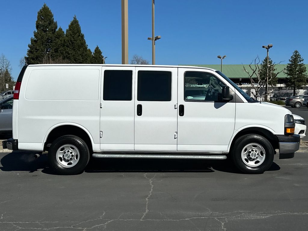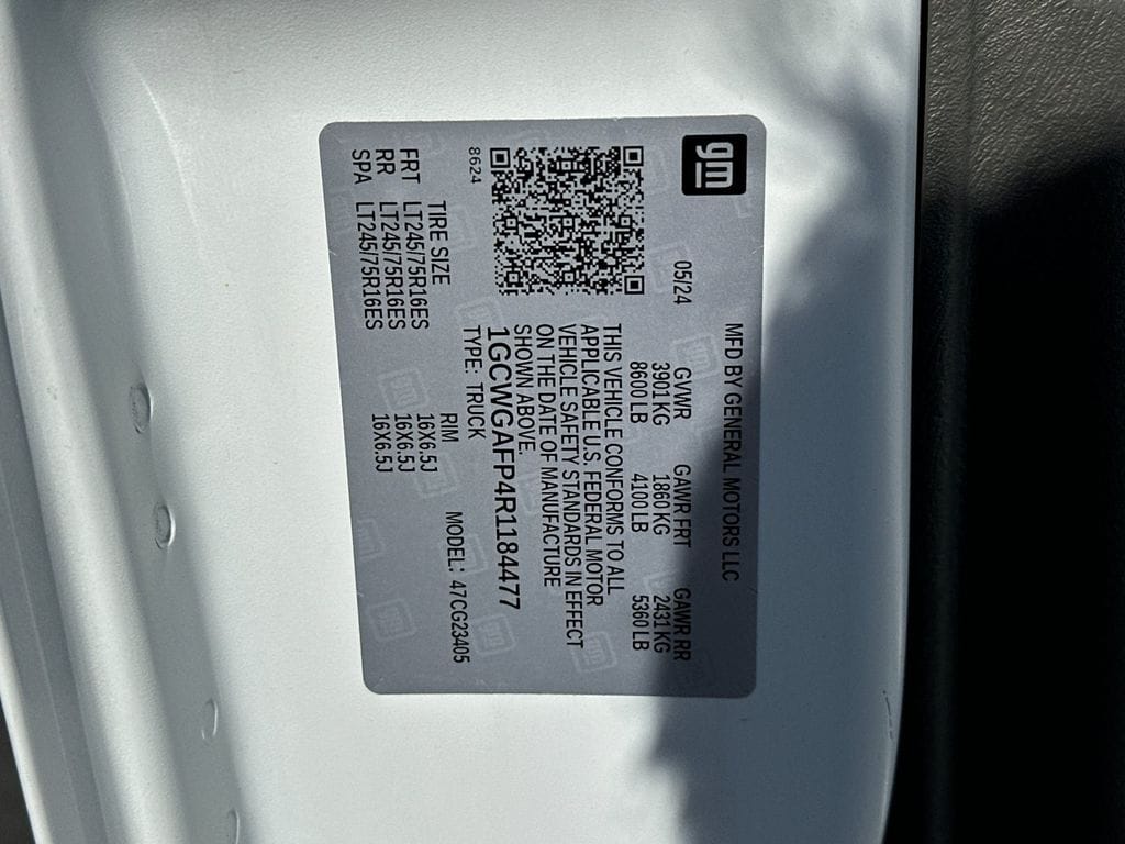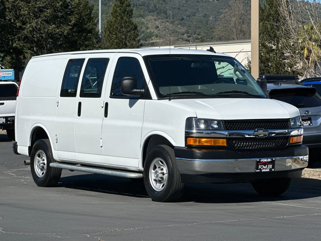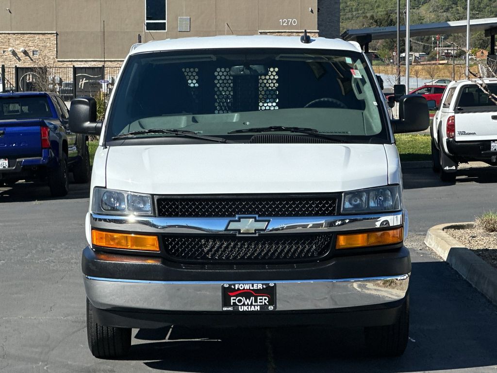 Summit White 2024 Chevrolet Express 2500 Work Van Cargo RWD 8-Speed Automatic with Overdrive 4.3L V6 16" x 6.5" Steel Wheels, 2 Speakers, 3.42 Rear Axle Ratio, 4-Wheel Disc Brakes, ABS brakes, Air Conditioning, AM/FM radio, AM/FM Stereo w/MP3 Player, Black Rubberized-Vinyl Front Only Floor Covering, Chrome Appearance Package, Chrome Grille, Cruise Control, Delay-off headlights, Driver & Front Passenger High-Back Bucket Seats, Driver Convenience Package, Driver door bin, Driver's Seat Mounted Armrest, Dual front impact airbags, Dual front side impact airbags, Electronic Stability Control, Emergency communication system: OnStar and Chevrolet connected services capable, Engine Cover Console w/Swing-Out Storage Bin, Exterior Parking Camera Rear, Fixed Rear Door Window Glass, Fixed Rear Side Door Window Glass, Front & Rear Chrome Bumpers w/Step-Pad, Front anti-roll bar, Front Bucket Seats, Front Reclining High-Back Bucket Seats, Front wheel independent suspension, Full-Length Black Rubberized-Vinyl Floor Covering, Fully automatic headlights, Heated door mirrors, Low tire pressure warning, Occupant sensing airbag, Overhead airbag, Passenger cancellable airbag, Passenger door bin, Passenger seat mounted armrest, Power door mirrors, Power steering, Power windows, Preferred Equipment Group 1WT, Rear & Side Cargo Door Glass, Rear Side Door Glass Window Security Bar, Reclining Front Bucket Seats w/Inboard Armrests, Single-Zone Manual Air Conditioning, Tachometer, Tilt Steering Wheel, Traction control, Trip computer, Variably intermittent wipers, Vinyl Seat Trim, Voltmeter.
