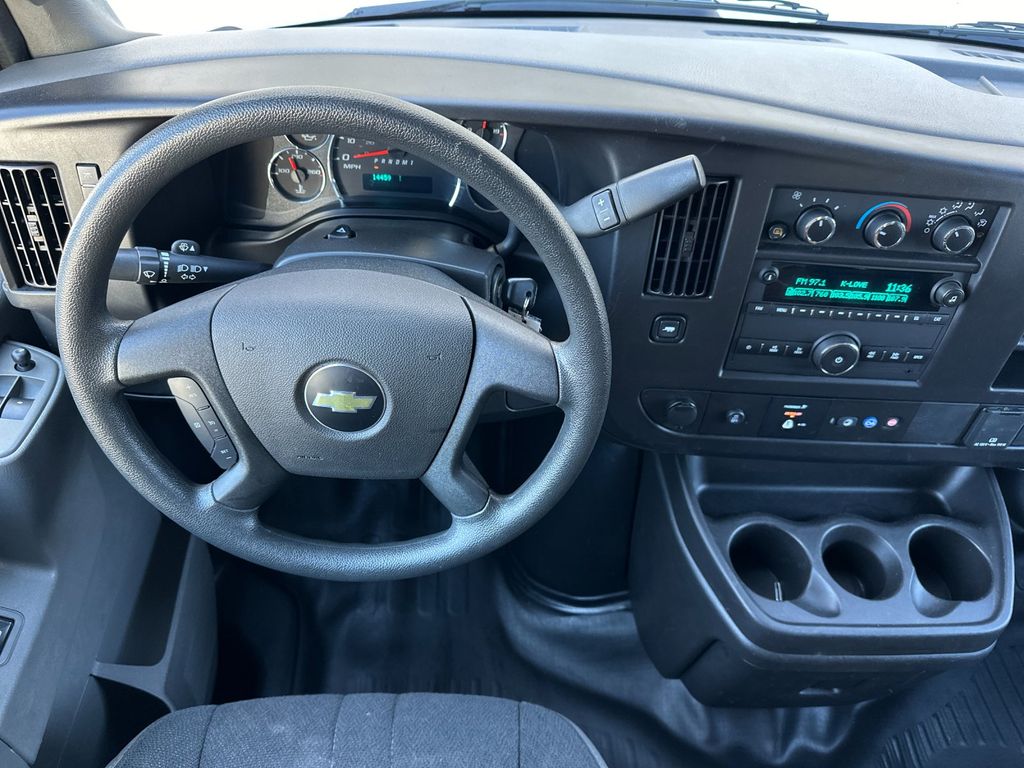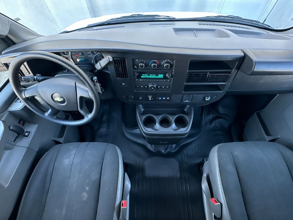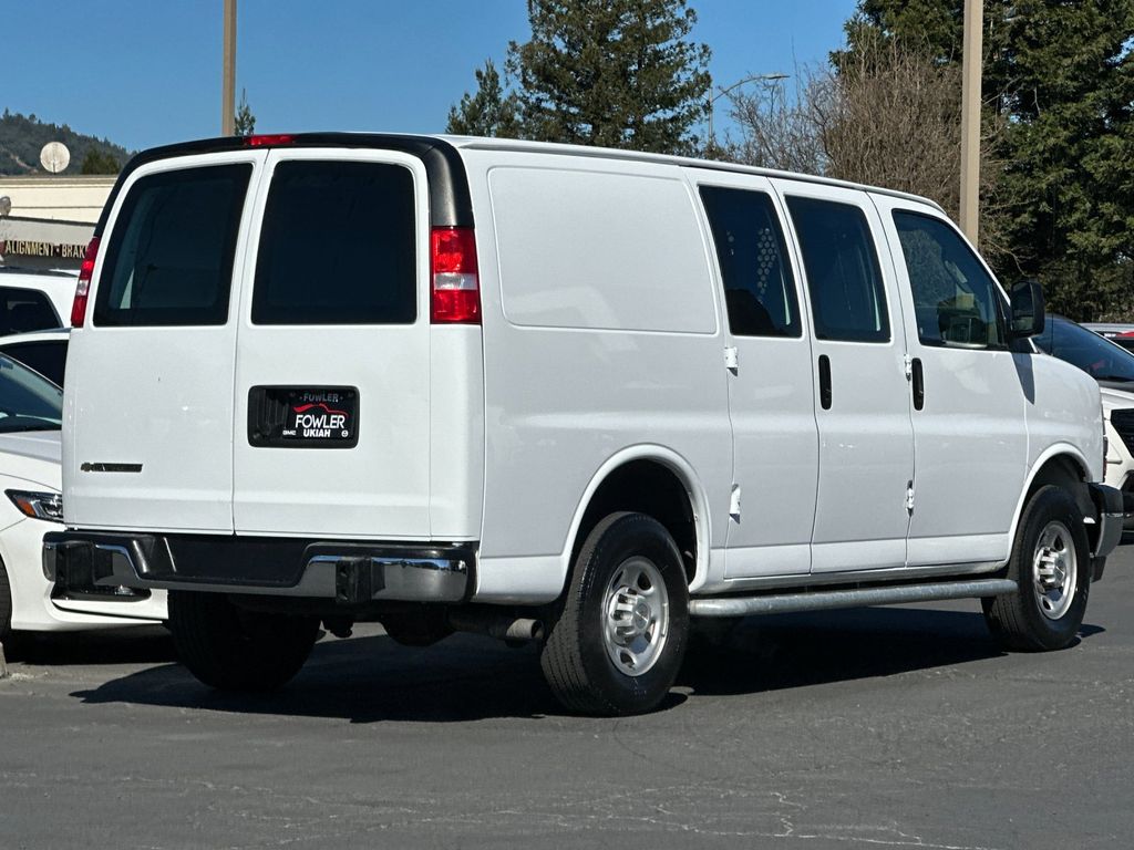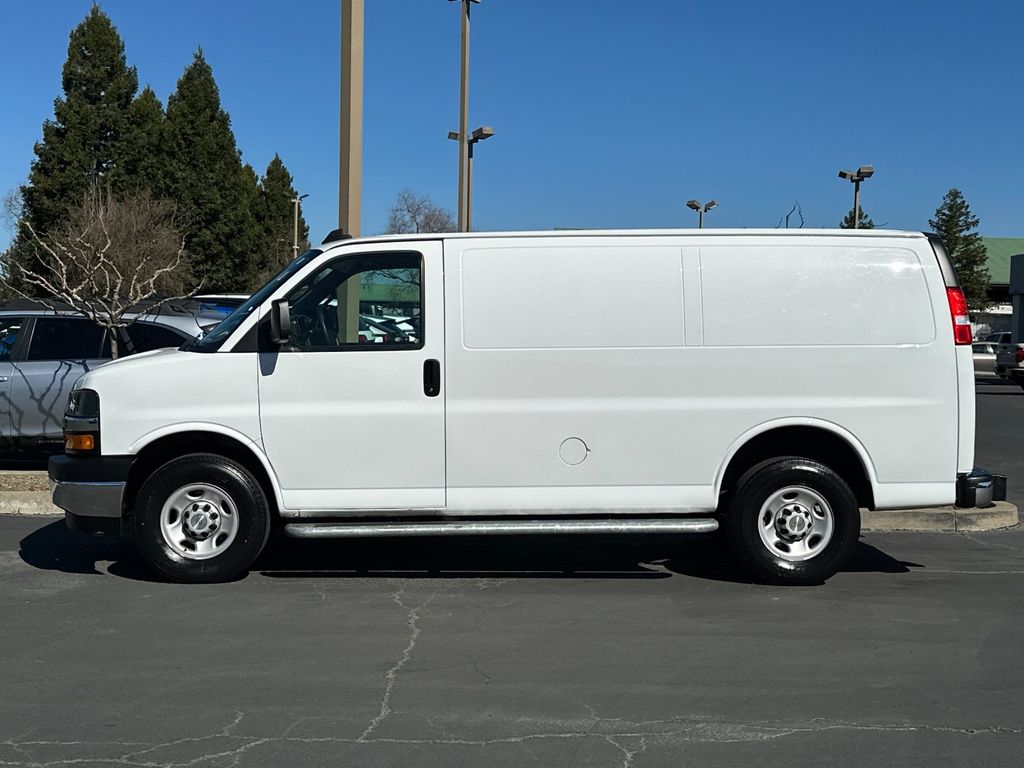 Summit White 2024 Chevrolet Express 2500 Work Van Cargo RWD 8-Speed Automatic with Overdrive 4.3L V6 16" x 6.5" Steel Wheels, 2 Speakers, 3.42 Rear Axle Ratio, 4-Wheel Disc Brakes, ABS brakes, Air Conditioning, AM/FM radio, AM/FM Stereo w/MP3 Player, Black Rubberized-Vinyl Front Only Floor Covering, Chrome Appearance Package, Chrome Grille, Cruise Control, Delay-off headlights, Driver & Front Passenger High-Back Bucket Seats, Driver Convenience Package, Driver door bin, Driver's Seat Mounted Armrest, Dual front impact airbags, Dual front side impact airbags, Electronic Stability Control, Emergency communication system: OnStar and Chevrolet connected services capable, Engine Cover Console w/Swing-Out Storage Bin, Exterior Parking Camera Rear, Fixed Rear Door Window Glass, Fixed Rear Side Door Window Glass, Front & Rear Chrome Bumpers w/Step-Pad, Front anti-roll bar, Front Bucket Seats, Front Reclining High-Back Bucket Seats, Front wheel independent suspension, Full-Length Black Rubberized-Vinyl Floor Covering, Fully automatic headlights, Heated door mirrors, Low tire pressure warning, Occupant sensing airbag, Overhead airbag, Passenger cancellable airbag, Passenger door bin, Passenger seat mounted armrest, Power door mirrors, Power steering, Power windows, Preferred Equipment Group 1WT, Rear & Side Cargo Door Glass, Rear Side Door Glass Window Security Bar, Reclining Front Bucket Seats w/Inboard Armrests, Single-Zone Manual Air Conditioning, Tachometer, Tilt Steering Wheel, Traction control, Trip computer, Variably intermittent wipers, Vinyl Seat Trim, Voltmeter.