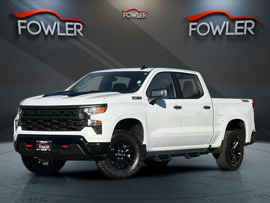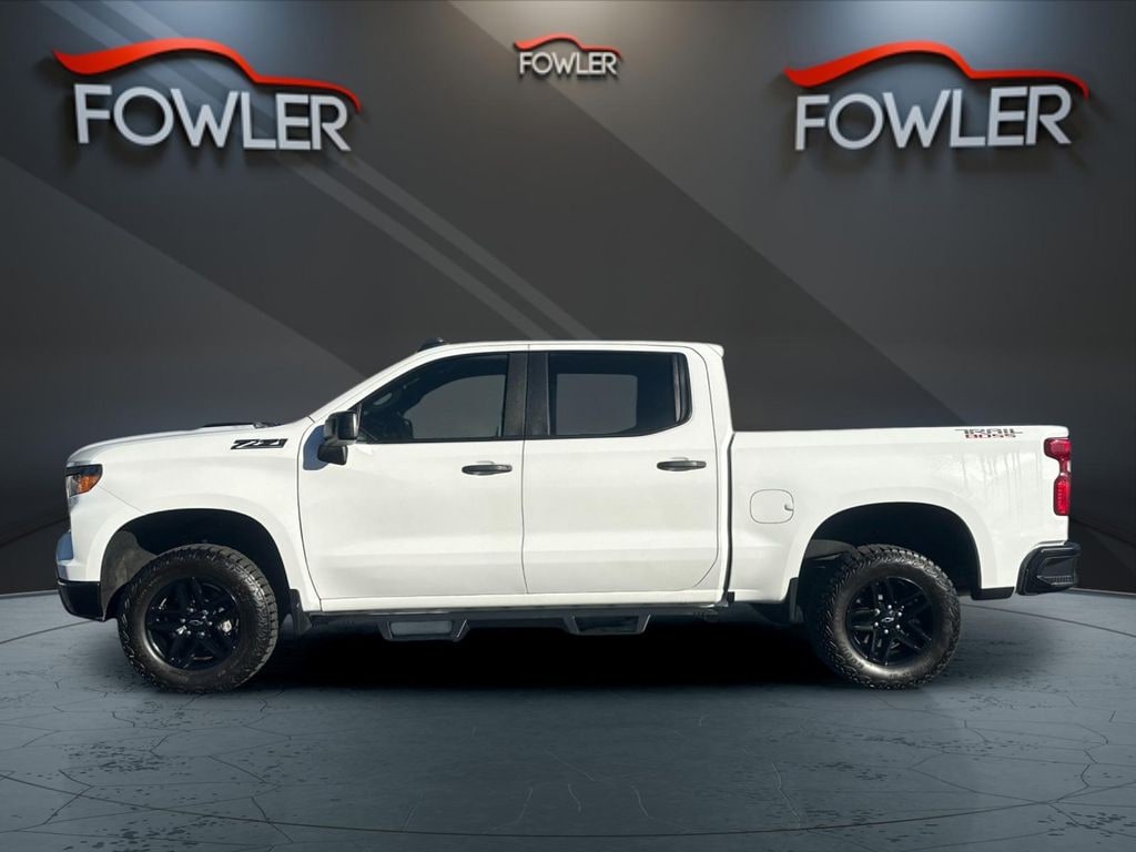 Summit White 2024 Chevrolet Silverado 1500 Custom Trail Boss 4WD 10-Speed Automatic EcoTec3 5.3L V8 10-Speed Automatic, 4WD, Black Cloth, 10-Way Power Driver Seat w/Lumbar, 120-Volt Bed Mounted Power Outlet, 120-Volt Interior Power Outlet, 170 Amp Alternator, 220 Amp Alternator, 3.5" Monochromatic Display Driver Info Center, 4-Wheel Disc Brakes, 40/20/40 Front Split-Bench Seat, 6 Speakers, 6-Speaker Audio System, ABS brakes, Air Conditioning, Alloy wheels, AM/FM radio: SiriusXM, Auto High-beam Headlights, Auto-Locking Rear Differential, Automatic Emergency Braking, Auxiliary External Transmission Oil Cooler, Black Name Plates (LPO), Bluetooth® For Phone, Brake assist, Chevrolet Connected Access Capable, Cloth Seat Trim, Color-Keyed Carpeting Floor Covering, Compass, Custom Convenience Package, Dark Essentials Package (LPO), Deep-Tinted Glass, Delay-off headlights, Driver door bin, Driver vanity mirror, Dual Exhaust w/Polished Outlets, Dual front impact airbags, Dual front side impact airbags, Dual Rear USB Ports (Charge Only), Electric Rear-Window Defogger, Electrical Steering Column Lock, Electronic Cruise Control, Electronic Stability Control, External Engine Oil Cooler, EZ Lift Power Lock & Release Tailgate, Following Distance Indicator, Forward Collision Alert, Front anti-roll bar, Front Center Armrest w/Storage, Front License Plate Kit, Front Pedestrian Braking, Front reading lights, Front Rubberized Vinyl Floor Mats, Front wheel independent suspension, Fully automatic headlights, HD Rear Vision Camera, Heated door mirrors, Heavy-Duty Air Filter, Hill Descent Control, Hitch Guidance, Illuminated entry, Integrated Trailer Brake Controller, IntelliBeam Automatic High Beam On/Off, Lane Keep Assist w/Lane Departure Warning, LED Cargo Area Lighting, Low tire pressure warning, Manual Tilt Wheel Steering Column, Multi-Flex Tailgate, Not Equipped w/Steering Column Lock, Occupant sensing airbag, OnStar & Chevrolet Connected Services Capable, Outside temperature display, Overhead airbag, Overhead console, Panic alarm, Passenger door bin, Passenger vanity mirror, Performance Red Recovery Hooks, Power door mirrors, Power driver seat, Power Front Windows w/Driver Express Up/Down, Power Front Windows w/Passenger Express Down, Power Rear Windows w/Express Down, Power steering, Power windows, Preferred Equipment Group 2CX, Premium audio system: Chevrolet Infotainment 3, Radio data system, Radio: Chevrolet Infotainment 3 System, Rear 60/40 Folding Bench Seat (Folds Up), Rear reading lights, Rear Rubberized-Vinyl Floor Mats, Rear step bumper, Rear window defroster, Remote Keyless Entry, Remote keyless entry, Remote Vehicle Starter System, Security system, Single Outlet Exhaust, SiriusXM Radio, Speed control, Speed-sensing steering, Split folding rear seat, Standard Tailgate, Suspension Package, Tachometer, Theft Deterrent System (Unauthorized Entry), Tilt steering wheel, Traction control, Trailering Package, Trip computer, Variably intermittent wipers, Voltmeter, Wheels: 18" x 8.5" Black Painted Aluminum, Wi-Fi Hot Spot Capable, 10-Speed Automatic, 4WD, Black Cloth.