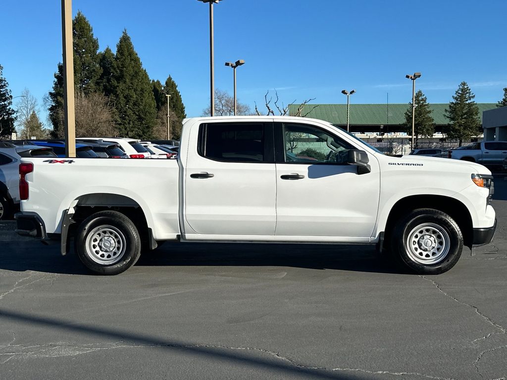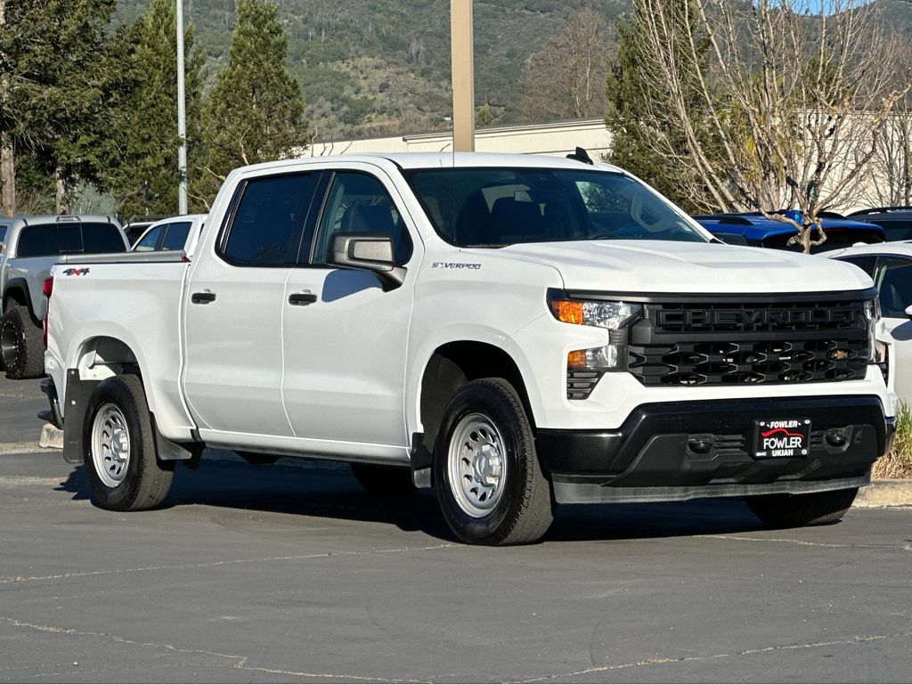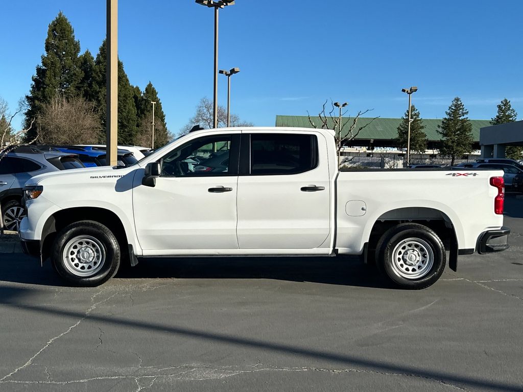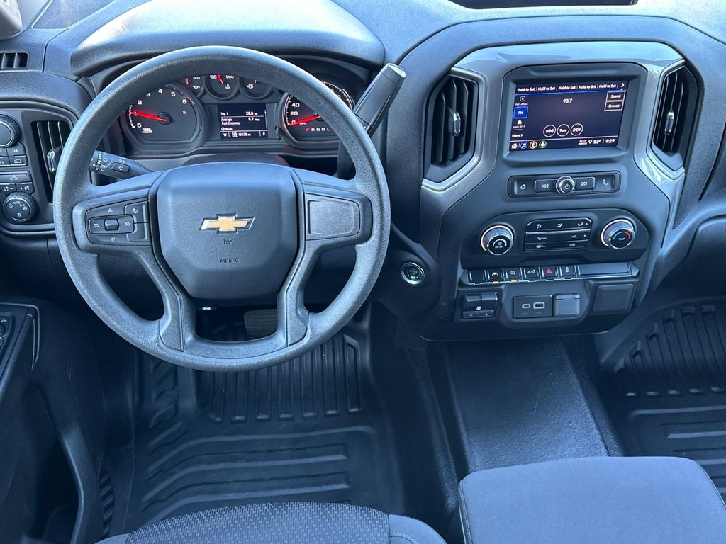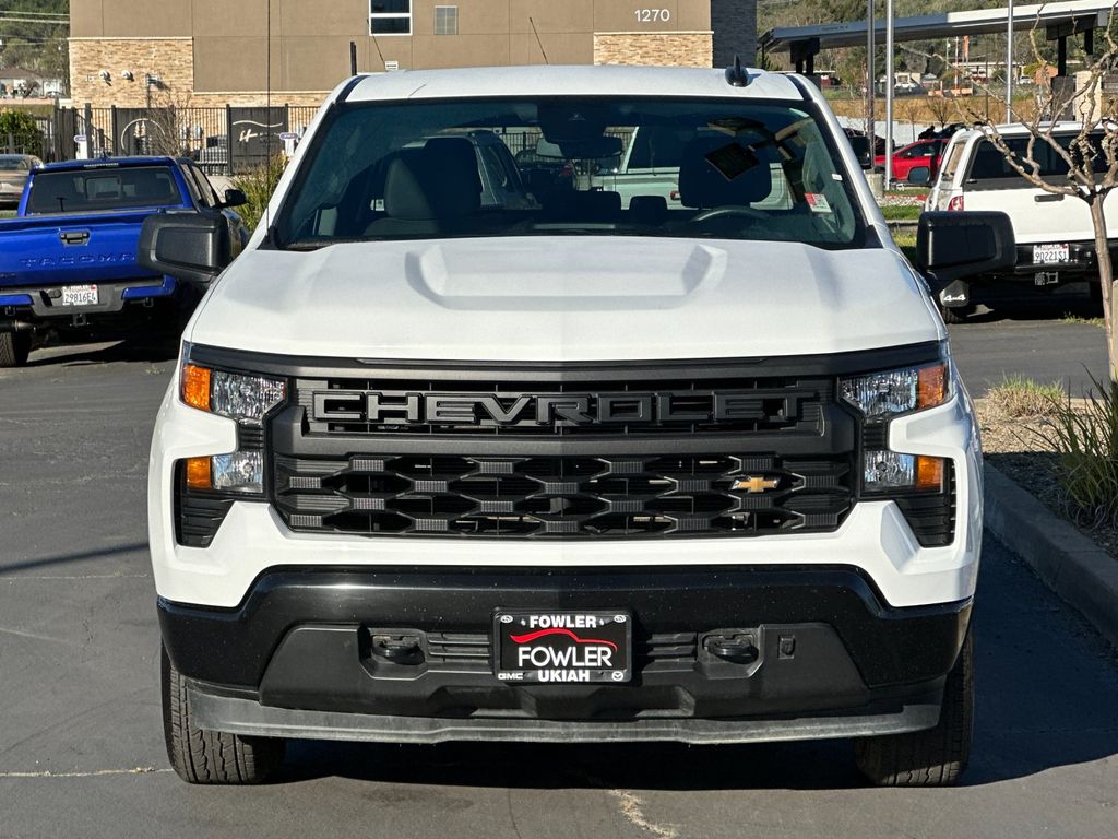 Certified. White 2024 Chevrolet Silverado 1500 WT 4WD 10-Speed Automatic EcoTec3 5.3L V8 GM Certified, 10-Speed Automatic, 4WD, Vinyl, 220 Amp Alternator, 3.42 Rear Axle Ratio, 3.5" Monochromatic Display Driver Info Center, 4-Wheel Disc Brakes, 40/20/40 Front Split-Bench Seat, 6 Speakers, 6-Speaker Audio System, ABS brakes, Air Conditioning, Auto High-beam Headlights, Automatic Emergency Braking, Black (Semi-Gloss) Front Bumper, Black (Semi-Gloss) Rear Bumper, Black Manual Outside Mirrors, Bluetooth® For Phone, Brake assist, Chevrolet Connected Access Capable, Compass, Delay-off headlights, Driver door bin, Dual front impact airbags, Dual front side impact airbags, Electrical Steering Column Lock, Electronic Stability Control, Following Distance Indicator, Forward Collision Alert, Front anti-roll bar, Front Center Armrest w/Storage, Front Frame-Mounted Black Recovery Hooks, Front Pedestrian Braking, Front reading lights, Front wheel independent suspension, Fully automatic headlights, HD Rear Vision Camera, Illuminated entry, Inside Rear-View Mirror w/Tilt, IntelliBeam Automatic High Beam On/Off, Lane Keep Assist w/Lane Departure Warning, Locking Tailgate, Low tire pressure warning, Manual Tailgate Function w/No EZ Lift, Manual Tilt Wheel Steering Column, Occupant sensing airbag, OnStar & Chevrolet Connected Services Capable, Outside temperature display, Overhead airbag, Overhead console, Panic alarm, Passenger door bin, Passenger vanity mirror, Power Front Windows w/Driver Express Up/Down, Power Front Windows w/Passenger Express Down, Power Rear Windows w/Express Down, Power steering, Power windows, Premium audio system: Chevrolet Infotainment 3, Radio data system, Radio: Chevrolet Infotainment 3 System, Rear 60/40 Folding Bench Seat (Folds Up), Rear reading lights, Rear step bumper, Remote Keyless Entry, Remote keyless entry, Rubberized-Vinyl Floor Covering, SiriusXM Delete, Solar Absorbing Tinted Glass, Speed-sensing steering, Split folding rear seat, Standard Suspension Package, Standard Tailgate, Tachometer, Tilt steering wheel, Traction control, Trip computer, Variably intermittent wipers, Vinyl Seat Trim, Voltmeter, Wheels: 17" x 8" Ultra Silver Painted Steel, Wi-Fi Hot Spot Capable, 10-Speed Automatic, 4WD, Vinyl.