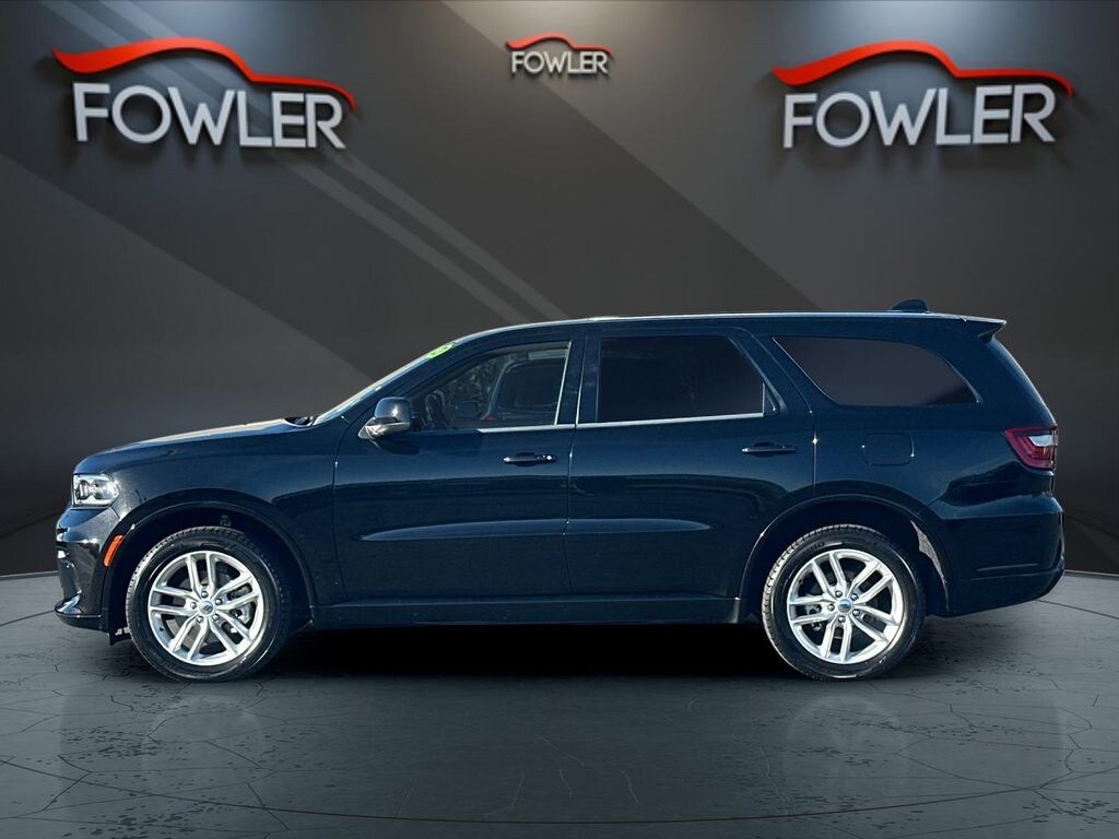 DB Black Crystal Clearcoat 2023 Dodge Durango GT AWD 8-Speed Automatic 3.6L V6 24V VVT AWD, 3.45 Rear Axle Ratio, 3rd row seats: split-bench, 4-Wheel Disc Brakes, 6 Speakers, ABS brakes, Air Conditioning, Alloy wheels, AM/FM radio: SiriusXM, Apple CarPlay, Apple CarPlay/Android Auto, Auto-dimming Rear-View mirror, Automatic temperature control, Brake assist, Bumpers: body-color, Cloth Bucket Seats w/Shift Insert, Compass, Delay-off headlights, Driver door bin, Driver vanity mirror, Dual front impact airbags, Dual front side impact airbags, Electronic Stability Control, Exterior Mirrors w/Heating Element, Four wheel independent suspension, Front anti-roll bar, Front Bucket Seats, Front Center Armrest w/Storage, Front dual zone A/C, Front License Plate Bracket, Front reading lights, Fully automatic headlights, Garage door transmitter, Gloss Black Exterior Mirrors, Google Android Auto, GPS Antenna Input, Heated door mirrors, Heated front seats, Heated steering wheel, Illuminated entry, Integrated Center Stack Radio, Integrated Voice Command w/Bluetooth, Knee airbag, Leather steering wheel, Low tire pressure warning, Occupant sensing airbag, Outside temperature display, Overhead airbag, Overhead console, Panic alarm, ParkView Rear Back-Up Camera, Passenger door bin, Passenger vanity mirror, Power door mirrors, Power driver seat, Power Liftgate, Power steering, Power windows, Quick Order Package 2BD GT, Radio data system, Radio: Uconnect 4 w/8.4" Display, Rear air conditioning, Rear anti-roll bar, Rear reading lights, Rear seat center armrest, Rear window defroster, Rear window wiper, Red Accent Stitching, Remote keyless entry, SiriusXM Radio Service, SiriusXM Satellite Radio, Speed control, Speed-sensing steering, Speed-Sensitive Wipers, Split folding rear seat, Spoiler, Sport steering wheel, Steering wheel mounted audio controls, Tachometer, Telescoping steering wheel, Tilt steering wheel, Traction control, Trip computer, USB Host Flip, Variably intermittent wipers, Voltmeter, Wheels: 20" x 8.0" Fine Silver, AWD.