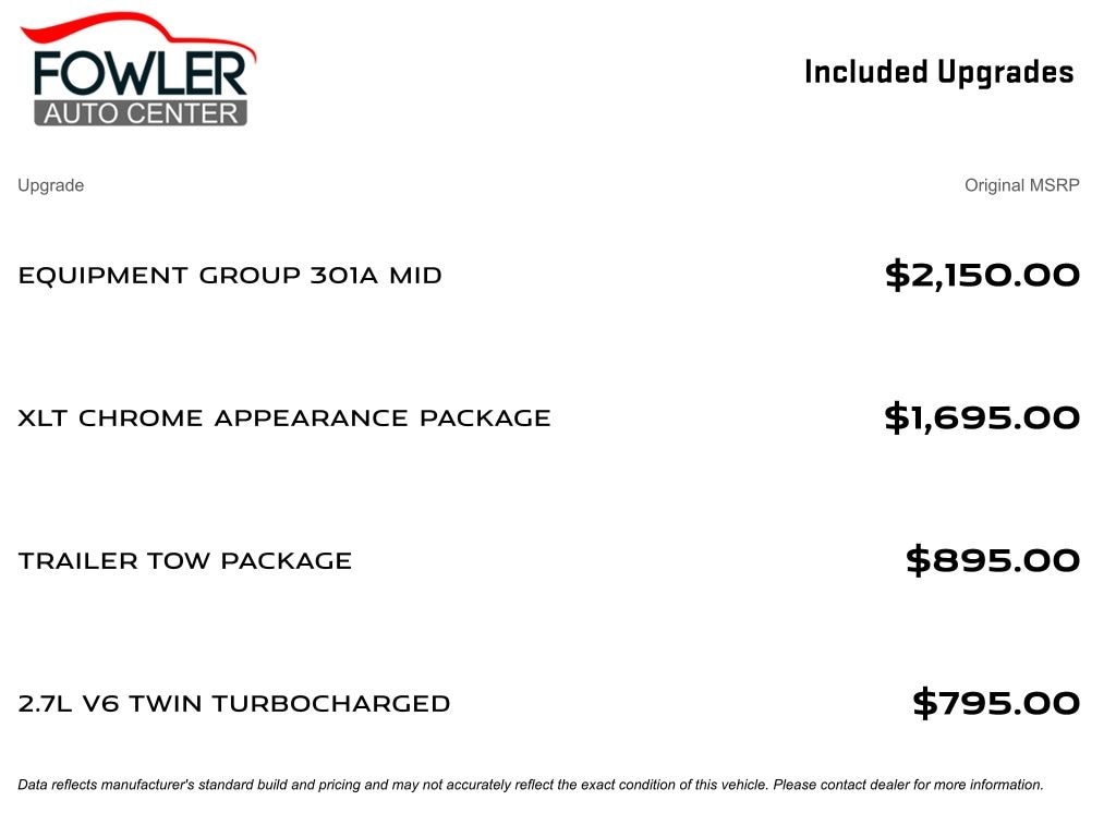 Under the hood, the 2.7L V6 EcoBoost engine delivers exceptional power and efficiency, with a best-in-class towing capacity of up to 11,100 lbs. The 6-speed automatic transmission provides seamless, responsive shifting, ensuring a smooth and comfortable ride no matter the terrain.