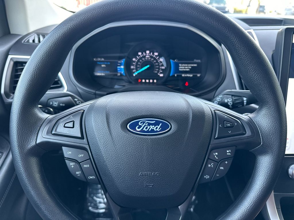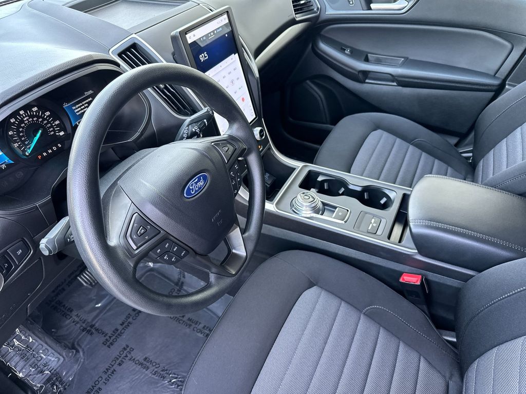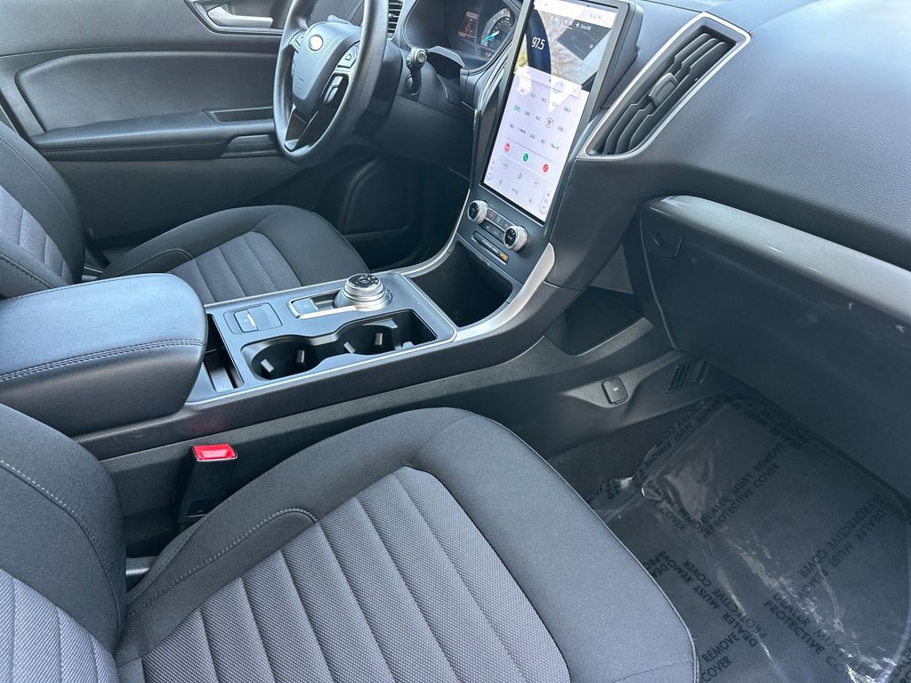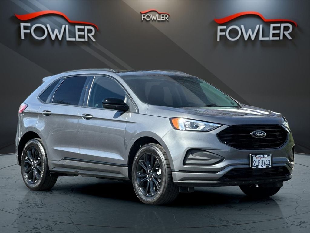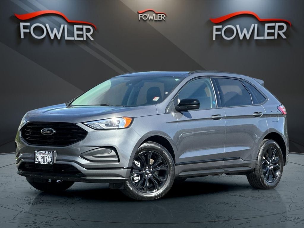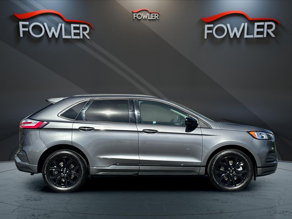 Gray Metallic 2024 Ford Edge SE AWD 8-Speed Automatic EcoBoost 2.0L I4 GTDi DOHC Turbocharged VCT AWD, 3.80 Axle Ratio, 4-Wheel Disc Brakes, 6 Speakers, ABS brakes, Air Conditioning, Alloy wheels, AM/FM radio: SiriusXM with 360L, AM/FM Stereo, Auto High-beam Headlights, Automatic temperature control, Black Appearance Package, Black Badges, Black Grille & Surround, Black Mirror Caps, Black Painted Lower Bodyside Molding, Black Painted Skid Plate, Black Roof-Rack Side Rails, Body-Color Front & Rear Bumpers, Brake assist, Bumpers: body-color, Cloth Bucket Seats, Compass, Delay-off headlights, Driver door bin, Driver vanity mirror, Dual front impact airbags, Dual front side impact airbags, Electronic Stability Control, Emergency communication system: SYNC 4 911 Assist, Equipment Group 100A, FordPass Connect, Four wheel independent suspension, Front anti-roll bar, Front Bucket Seats, Front Center Armrest w/Storage, Front dual zone A/C, Front License Plate Bracket, Front reading lights, Fully automatic headlights, Illuminated entry, Knee airbag, Low tire pressure warning, Occupant sensing airbag, Outside temperature display, Overhead airbag, Overhead console, Panic alarm, Passenger door bin, Passenger vanity mirror, Power door mirrors, Power steering, Power windows, Rear anti-roll bar, Rear Parking Sensors, Rear reading lights, Rear seat center armrest, Rear window defroster, Rear window wiper, Remote keyless entry, SiriusXM w/360L, Speed control, Speed-Sensitive Wipers, Split folding rear seat, Spoiler, Steering wheel mounted audio controls, SYNC 4A w/Enhanced Voice Recognition, Tachometer, Telescoping steering wheel, Tilt steering wheel, Traction control, Trip computer, Variably intermittent wipers, Wheels: 18" Sparkle Silver-Painted Aluminum, Wheels: 19" High-Gloss Black Painted Aluminum, AWD.