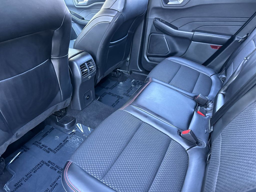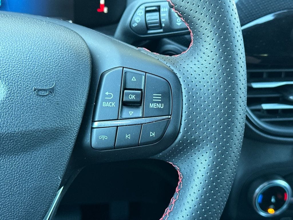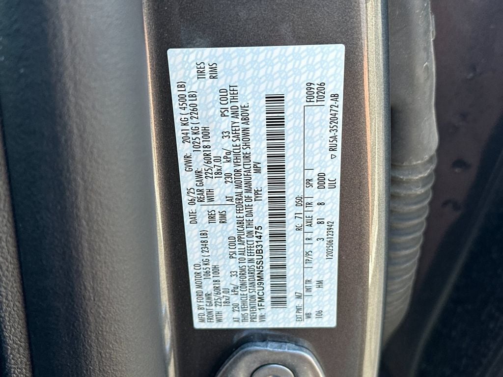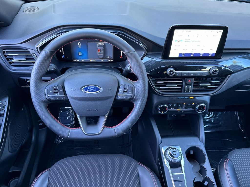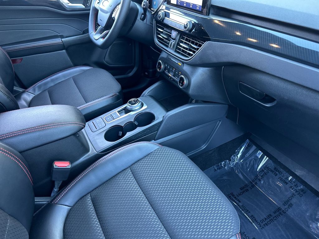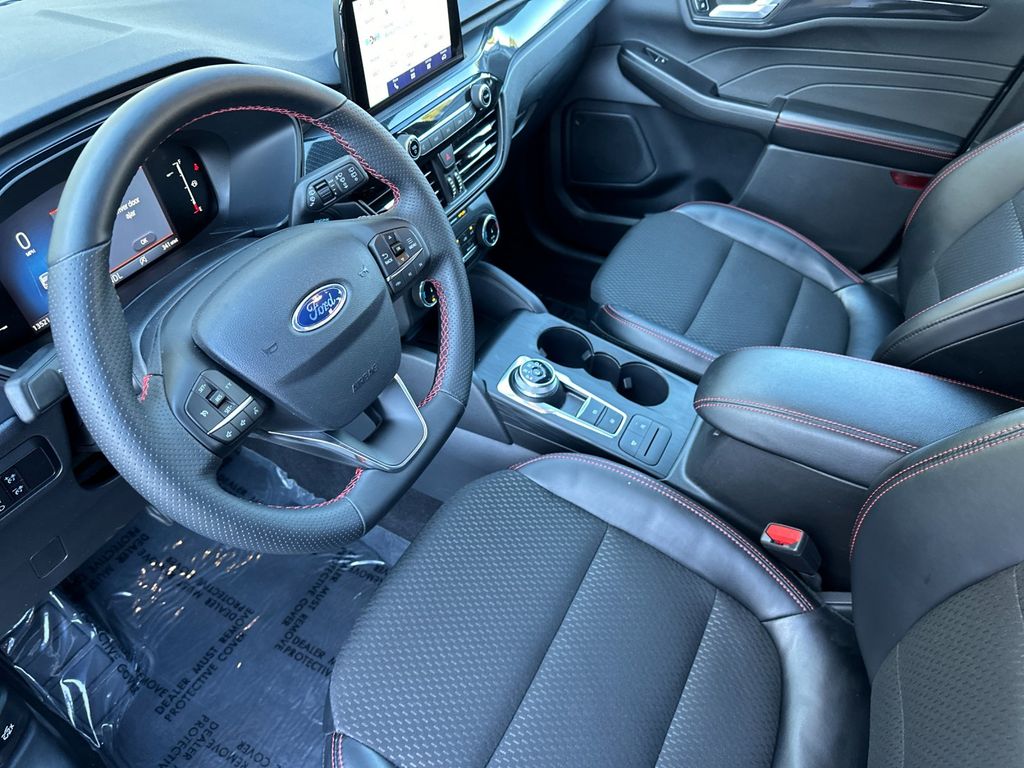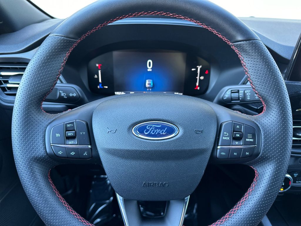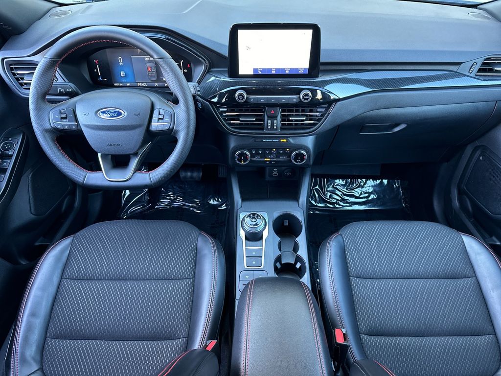 Gray Metallic 2025 Ford Escape ST-Line AWD 8-Speed Automatic 1.5L EcoBoost AWD, 3.81 Axle Ratio, 4-Wheel Disc Brakes, 6 Speakers, ABS brakes, Air Conditioning, Alloy wheels, AM/FM radio: SiriusXM, AM/FM Stereo, Auto High-beam Headlights, Automatic temperature control, Brake assist, Bumpers: body-color, Compass, Delay-off headlights, Driver door bin, Driver vanity mirror, Dual front impact airbags, Dual front side impact airbags, Electronic Stability Control, Emergency communication system: SYNC 4 911 Assist, Equipment Group 300A, FordPass Connect, Four wheel independent suspension, Front anti-roll bar, Front Bucket Seats, Front Center Armrest, Front dual zone A/C, Front License Plate Bracket, Front reading lights, Fully automatic headlights, Illuminated entry, Internet access capable: FordPass Connect 4G, Knee airbag, Low tire pressure warning, Occupant sensing airbag, Outside temperature display, Overhead airbag, Overhead console, Panic alarm, Passenger door bin, Passenger vanity mirror, Power door mirrors, Power driver seat, Power steering, Power windows, Radio data system, Rear anti-roll bar, Rear reading lights, Rear seat center armrest, Rear window defroster, Rear window wiper, Remote keyless entry, Speed control, Speed-sensing steering, Speed-Sensitive Wipers, Split folding rear seat, Spoiler, Sport steering wheel, Steering wheel mounted audio controls, SYNC 4, Tachometer, Telescoping steering wheel, Tilt steering wheel, Traction control, Trip computer, Variably intermittent wipers, Vinyl/Cloth Front Sport Contour Bucket Seats, Wheels: 18" Rock Metallic Painted Aluminum, AWD.