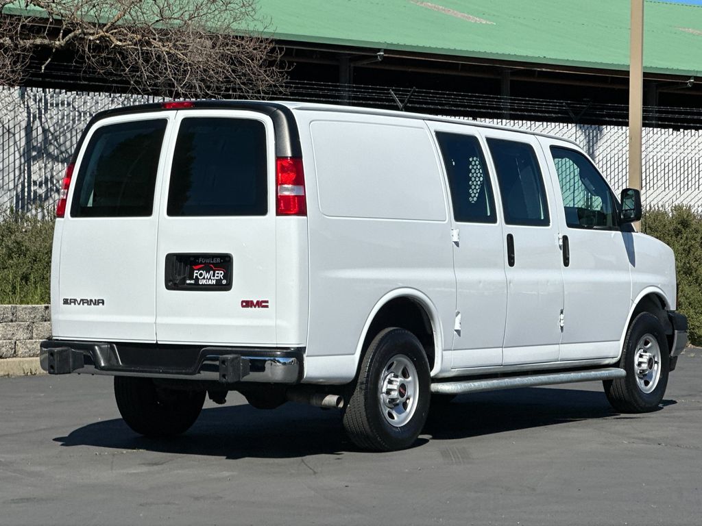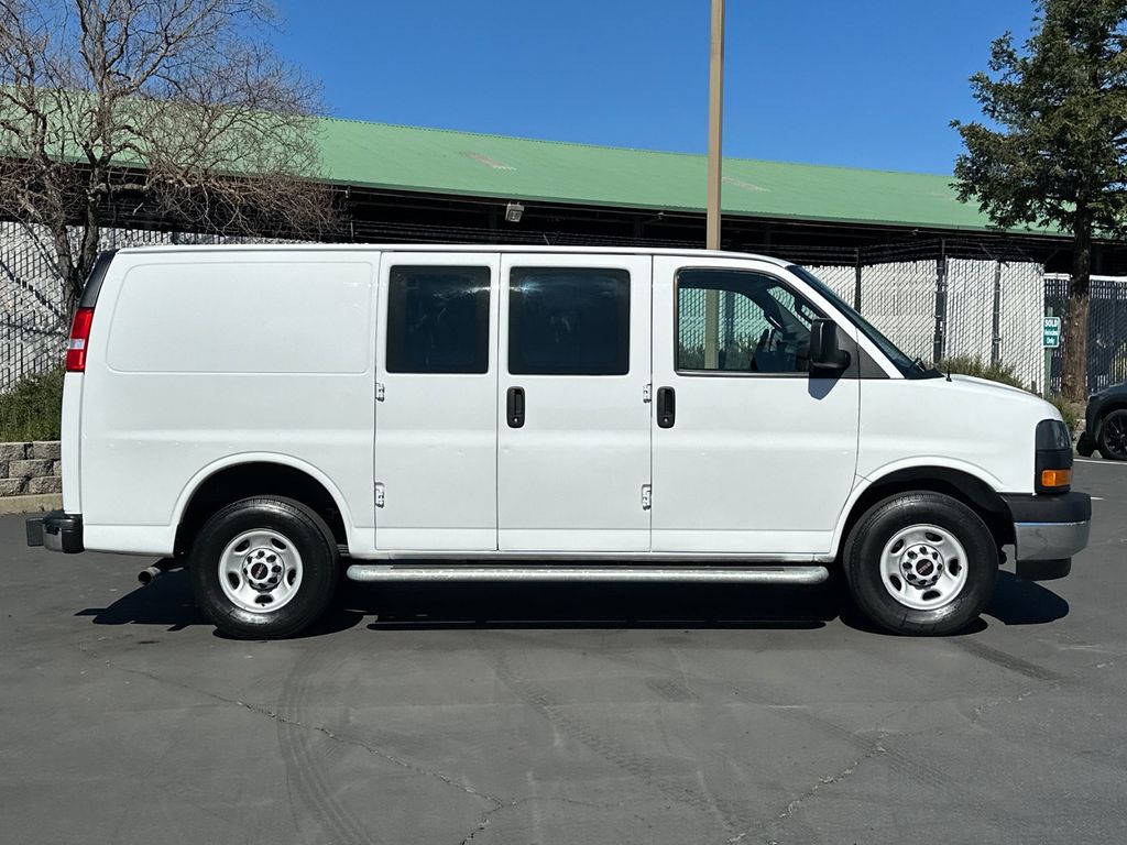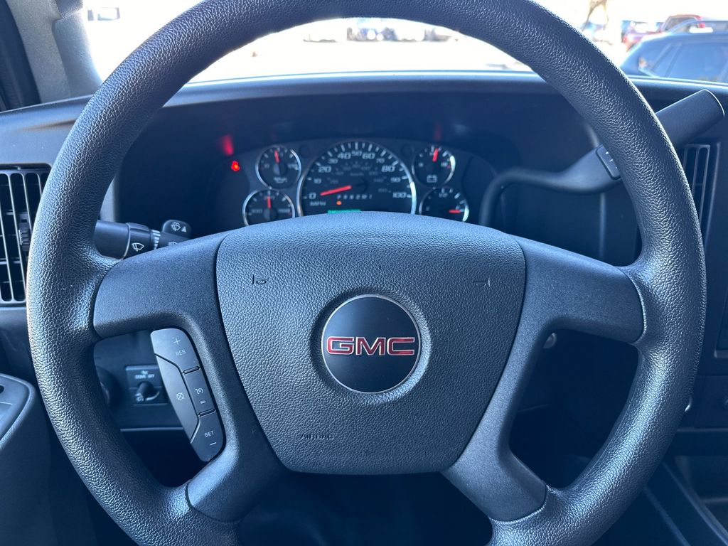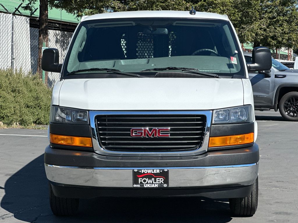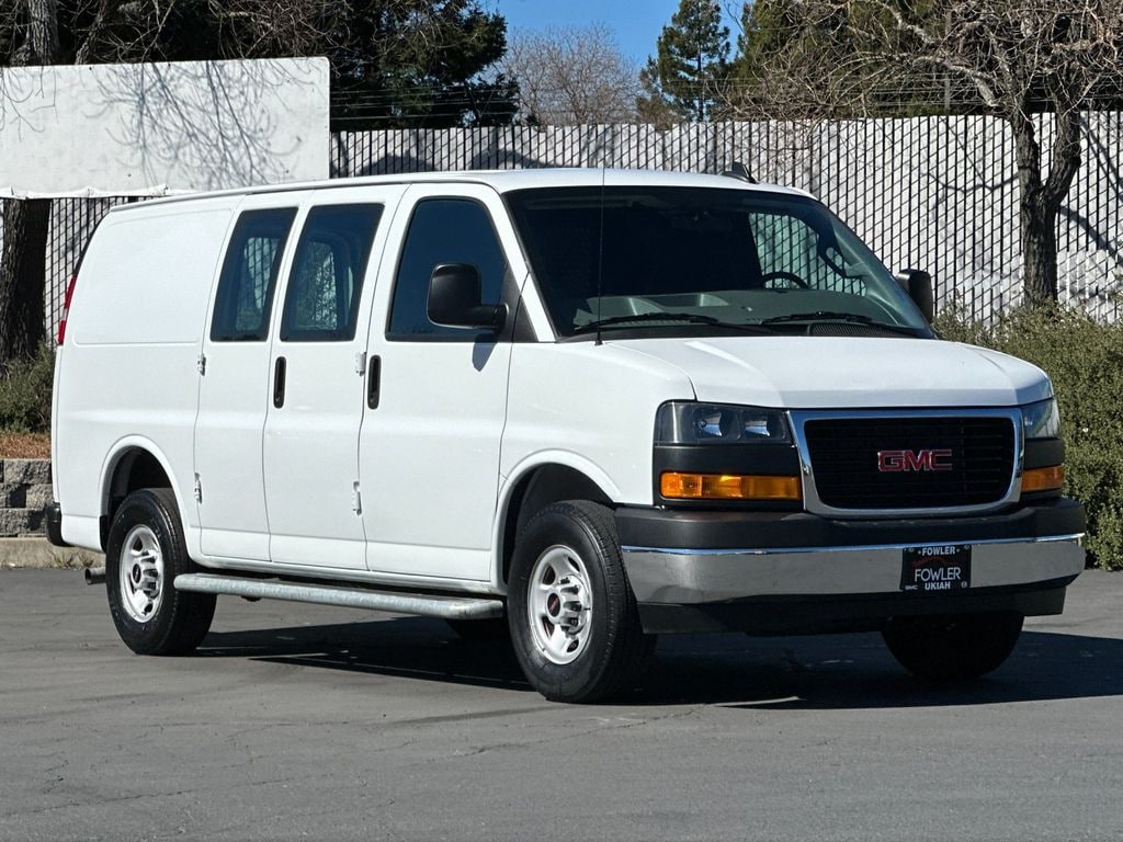 Summit White 2024 GMC Savana 2500 Work Van RWD 8-Speed Automatic with Overdrive 4.3L V6 16" x 6.5" Steel Wheels, 2 Speakers, 3.42 Rear Axle Ratio, 4-Wheel Disc Brakes, ABS brakes, Air Conditioning, AM/FM radio, AM/FM Stereo w/MP3 Player, Black Rubberized-Vinyl Front Only Floor Covering, Chrome Appearance Package, Chrome Grille, Cruise Control, Delay-off headlights, Driver & Front Passenger High-Back Bucket Seats, Driver Convenience Package, Driver door bin, Driver's Seat Mounted Armrest, Dual front impact airbags, Dual front side impact airbags, Electronic Stability Control, Emergency communication system: OnStar and GMC connected services capable, Engine Cover Console w/Swing-Out Storage Bin, Fixed Rear Door Window Glass, Fixed Rear Side Door Window Glass, Front & Rear Chrome Bumpers w/Step-Pad, Front anti-roll bar, Front Bucket Seats, Front Reclining High-Back Bucket Seats, Front wheel independent suspension, Full-Length Black Rubberized-Vinyl Floor Covering, Fully automatic headlights, Heated door mirrors, Low tire pressure warning, Occupant sensing airbag, Overhead airbag, Passenger cancellable airbag, Passenger door bin, Passenger seat mounted armrest, Power door mirrors, Power steering, Power windows, Preferred Equipment Group 1WT, Rear & Side Cargo Door Glass, Rear Side Door Glass Window Security Bar, Reclining Front Bucket Seats w/Inboard Armrests, Single-Zone Manual Air Conditioning, Tachometer, Tilt Steering Wheel, Traction control, Trip computer, Variably intermittent wipers, Vinyl Seat Trim, Voltmeter.