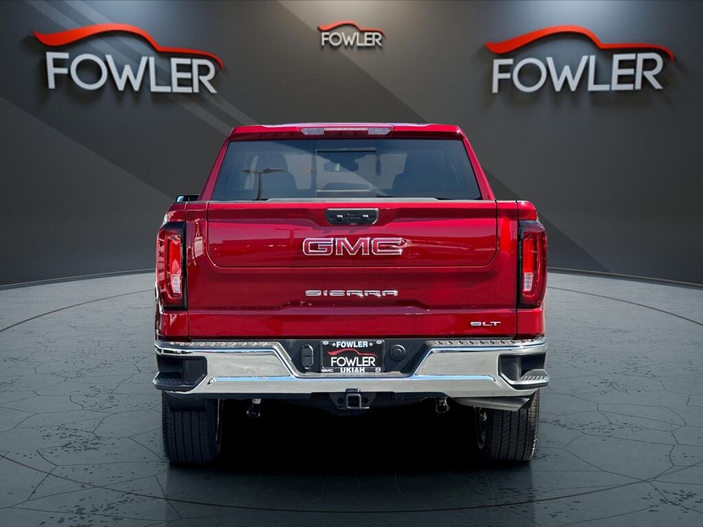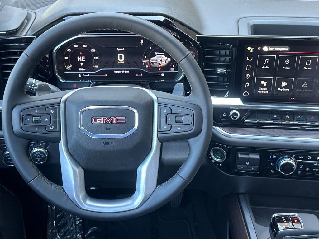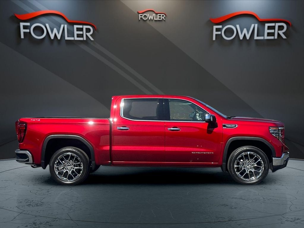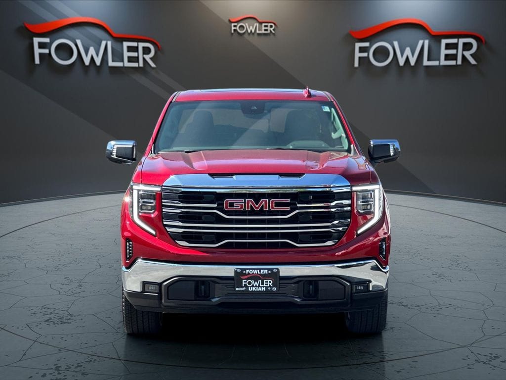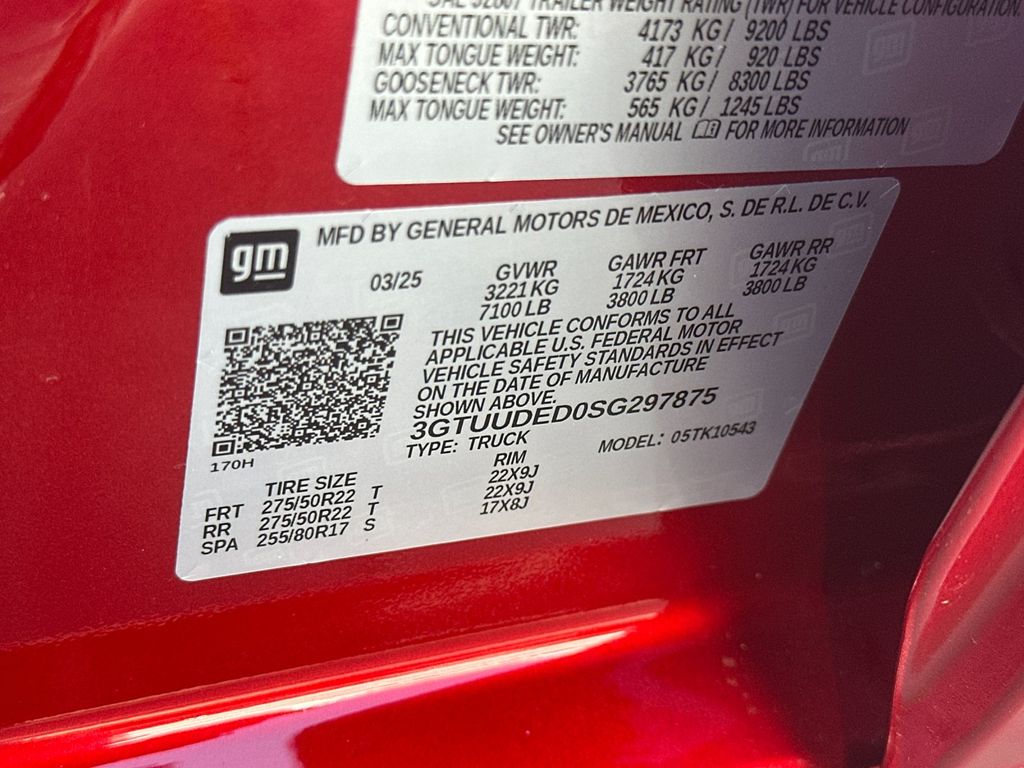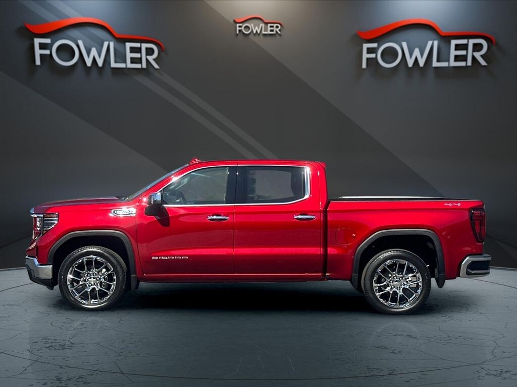 Volcanic Red Tintcoat 2025 GMC Sierra 1500 SLT 4WD 10-Speed Automatic EcoTec3 5.3L V8 10-Speed Automatic, 4WD, Black Leather, 10-Way Power Driver Seat Adjuster w/Lumbar, 10-Way Power Passenger Seat Adjuster w/Lumbar, 120-Volt Bed Mounted Power Outlet, 120-Volt Interior Power Outlet, 170 Amp Alternator, 2 Charge/Data USB Ports, 2 Charge/Data USB Ports Inside Center Console, 2 Type-C Charge-Only Rear USB Ports, 3.23 Rear Axle Ratio, 4-Wheel Disc Brakes, 6 Speakers, 6-Speaker Audio System Feature, ABS brakes, Adaptive Cruise Control, Air Conditioning, Alloy wheels, AM/FM radio: SiriusXM with 360L, Apple CarPlay/Android Auto, Auto High-beam Headlights, Auto-dimming door mirrors, Auto-dimming Rear-View mirror, Auto-Locking Rear Differential, Automatic Emergency Braking, Automatic temperature control, Auxiliary External Transmission Oil Cooler, Brake assist, Buckle to Drive, Bumpers: chrome, Chrome Header & Chrome Grille Insert Bars, Color-Keyed Carpeting Floor Covering, Compass, Deep-Tinted Glass, Delay-off headlights, Driver door bin, Driver Memory, Driver vanity mirror, Dual front impact airbags, Dual front side impact airbags, Electric Rear-Window Defogger, Electronic Precision Shift, Electronic Stability Control, Emergency communication system: OnStar, Floor-Mounted Center Console, Following Distance Indicator, Forward Collision Alert, Front 40/20/40 Split-Bench Seat, Front anti-roll bar, Front Bucket Seats, Front Center Armrest w/Storage, Front dual zone A/C, Front fog lights, Front Frame-Mounted Black Recovery Hooks, Front License Plate Kit, Front Pedestrian Braking, Front Rain-Sensing Wipers, Front reading lights, Front wheel independent suspension, Fully automatic headlights, HD Rear Vision Camera, Heated 2nd Row Outboard Seats, Heated door mirrors, Heated Driver & Front Outboard Passenger Seating, Heated front seats, Heated steering wheel, High Capacity Suspension Package, Hitch Guidance, Illuminated entry, Integrated Trailer Brake Controller, IntelliBeam Automatic High Beam On/Off, Keyless Open & Start, Lane Keep Assist w/Lane Departure Warning, LED Cargo Area Lighting, Low tire pressure warning, Manual Tilt-Wheel & Telescoping Steering Column, Memory seat, Navigation System, Occupant sensing airbag, OnStar Services Capable, Outside temperature display, Overhead airbag, Overhead console, Panic alarm, Passenger door bin, Passenger vanity mirror, Perf Leather-Appointed Front Outboard Seat Trim, Perimeter Lighting, Power Door Locks, Power door mirrors, Power driver seat, Power Front Passenger Windows w/Express Up/Down, Power Front Windows w/Driver Express Up/Down, Power passenger seat, Power Rake & Telescoping Steering Column, Power Rear Windows w/Express Down, Power Sliding Rear Window w/Rear Defogger, Power steering, Power Sunroof, Power windows, Preferred Equipment Group 4SA, Premium Bose 7-Speaker Sound System, Push Button Start, Radio data system, Radio: Premium GMC Infotainment Audio System, Rain sensing wipers, Rear reading lights, Rear seat center armrest, Rear step bumper, Rear Wheelhouse Liners, Rear window defroster, Remote keyless entry, Remote Vehicle Starter System, Security system, SiriusXM w/360L Trial Subscription, SLT Convenience Package, SLT Preferred Package, Speed control, Speed-sensing steering, Split folding rear seat, Spray-On Pickup Bedliner w/GMC Logo, Standard Suspension Package, Steering Wheel Audio Controls, Steering wheel mounted audio controls, Tachometer, Telescoping steering wheel, Theft Deterrent System (Unauthorized Entry), Tilt steering wheel, Traction control, Trailering Package, Trip computer, Universal Home Remote, Variably intermittent wipers, Ventilated Driver & Front Passenger Seats, Voltmeter, Wheels: 18" x 8.5" 6-Spoke Machined Aluminum, Wheels: 22" Bright Split-Spoke (LPO), Wheels: 22" Transit Steel, Wi-Fi Hotspot Capable, Wireless Apple CarPlay/Wireless Android Auto, Wireless Charging, 10-Speed Automatic, 4WD, Black Leather.