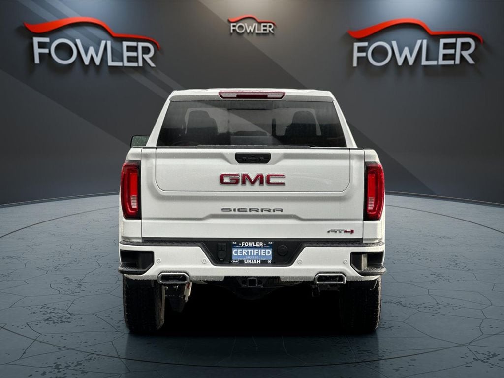 Certified. Summit White 2025 GMC Sierra 1500 AT4 4WD 10-Speed Automatic 3.0L I6 GMC Certified Pre-Owned Certified, 10-Speed Automatic, 4WD, Jet Black With Kalahari Accents Leather, 10-Way Power Driver Seat Adjuster w/Lumbar, 10-Way Power Passenger Seat Adjuster w/Lumbar, 120-Volt Bed Mounted Power Outlet, 120-Volt Interior Power Outlet, 2 Charge/Data USB Ports Inside Center Console, 2 Type-C Charge-Only Rear USB Ports, 2 USB Ports, 220 Amp Alternator, 3.23 Rear Axle Ratio, 4-Wheel Disc Brakes, 7 Speakers, ABS brakes, Air Conditioning, Alloy wheels, AM/FM radio: SiriusXM with 360L, Apple CarPlay/Android Auto, AT4 Preferred Package, Auto High-beam Headlights, Auto-dimming door mirrors, Auto-dimming Rear-View mirror, Auto-Locking Rear Differential, Automatic Emergency Braking, Automatic temperature control, Black Chrome Grille Insert Bars, Block heater, Brake assist, Buckle to Drive, Bumpers: body-color, Color-Keyed Carpeting Floor Covering, Compass, Deep-Tinted Glass, Delay-off headlights, Driver door bin, Driver Memory, Driver vanity mirror, Dual front impact airbags, Dual front side impact airbags, Electric Rear-Window Defogger, Electronic Stability Control, Emergency communication system: OnStar, Engine Block Heater, Floor-Mounted Center Console, Following Distance Indicator, Forward Collision Alert, Front anti-roll bar, Front Bucket Seats, Front Center Armrest, Front dual zone A/C, Front fog lights, Front License Plate Kit, Front Pedestrian Braking, Front Prem Floor Liners w/Removable Carpet Insert, Front Rain-Sensing Wipers, Front reading lights, Front wheel independent suspension, Fully automatic headlights, HD Surround Vision, Heated 2nd Row Outboard Seats, Heated door mirrors, Heated Driver & Front Outboard Passenger Seating, Heated front seats, Heated rear seats, Heated steering wheel, Heavy-Duty Air Filter, Hill Descent Control, Hitch Guidance, Hitch View, Illuminated entry, In-Vehicle Trailering System App, Integrated Trailer Brake Controller, IntelliBeam Automatic High Beam On/Off, Keyless Open & Start, Lane Keep Assist w/Lane Departure Warning, LED Cargo Area Lighting, Low tire pressure warning, Memory seat, Navigation System, Occupant sensing airbag, Off-Road Suspension, OnStar Services Capable, Outside temperature display, Overhead airbag, Overhead console, Panic alarm, Passenger door bin, Passenger vanity mirror, Perforated Front Leather Seat Trim, Perimeter Lighting, Power Door Locks, Power door mirrors, Power driver seat, Power Front Passenger Windows w/Express Up/Down, Power Front Windows w/Driver Express Up/Down, Power passenger seat, Power Rake & Telescoping Steering Column, Power Rear Windows w/Express Down, Power Sliding Rear Window w/Rear Defogger, Power steering, Power Sunroof, Power windows, Preferred Equipment Group 4SB, Premium Bose 7-Speaker Sound System, Push Button Start, Radio data system, Radio: Premium GMC Infotainment Audio System, Rain sensing wipers, Rear Cross Traffic Braking, Rear Pedestrian Detection, Rear Prem Floor Liners w/Removable Carpet Insert, Rear reading lights, Rear seat center armrest, Rear step bumper, Rear Wheelhouse Liners, Rear window defroster, Red Recovery Hooks, Remote keyless entry, Remote Vehicle Starter System, Safety Alert Seat, Security system, SiriusXM w/360L Trial Subscription, Speed control, Speed-sensing steering, Split folding rear seat, Spray-On Pickup Bedliner w/GMC Logo, Steering Wheel Audio Controls, Steering wheel mounted audio controls, Tachometer, Telescoping steering wheel, Theft Deterrent System (Unauthorized Entry), Tilt steering wheel, Traction control, Trailer Camera Provisions, Trailer Side Blind Zone Alert, Trailering Package, Trip computer, Ultrasonic Front & Rear Park Assist, Universal Home Remote, Variably intermittent wipers, Ventilated Driver & Front Passenger Seats, Ventilated front seats, Voltmeter, Wheels: 20" x 9" Machined Aluminum, Wi-Fi Hotspot Capable, Wireless Apple CarPlay/Wireless Android Auto, Wireless Charging, 10-Speed Automatic,