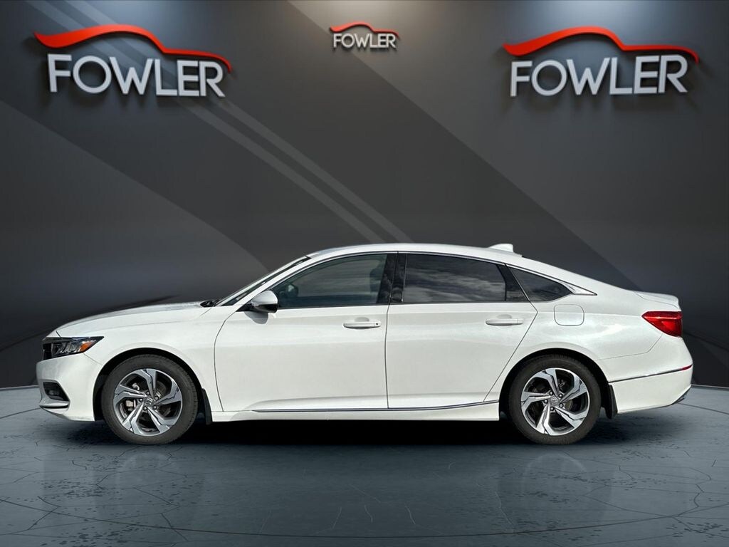 White 2018 Honda Accord EX-L FWD CVT 1.5T I4 DOHC 16V Turbocharged VTEC Black Leather, 10 Speakers, 17" Machine-Finished Alloy Wheels, 4-Wheel Disc Brakes, ABS brakes, Air Conditioning, Alloy wheels, AM/FM radio: SiriusXM, Apple CarPlay/Android Auto, Auto High-beam Headlights, Auto-dimming Rear-View mirror, Automatic temperature control, Blind Spot Information (BSI) System warning, Brake assist, Bumpers: body-color, Delay-off headlights, Driver door bin, Driver vanity mirror, Dual front impact airbags, Dual front side impact airbags, Electronic Stability Control, Emergency communication system: HondaLink, Exterior Parking Camera Rear, Four wheel independent suspension, Front anti-roll bar, Front Bucket Seats, Front Center Armrest, Front dual zone A/C, Front fog lights, Front reading lights, Fully automatic headlights, Garage door transmitter: HomeLink, Heated door mirrors, Heated Front Bucket Seats, Heated front seats, Illuminated entry, Knee airbag, Leather Shift Knob, Leather steering wheel, Leather-Trimmed Seats, Low tire pressure warning, Memory seat, Occupant sensing airbag, Outside temperature display, Overhead airbag, Overhead console, Panic alarm, Passenger door bin, Passenger vanity mirror, Power door mirrors, Power driver seat, Power moonroof, Power passenger seat, Power steering, Power windows, Radio data system, Radio: 450-Watt AM/FM/HD Premium Audio System, Rear anti-roll bar, Rear seat center armrest, Rear window defroster, Remote keyless entry, Security system, Speed control, Speed-sensing steering, Speed-Sensitive Wipers, Split folding rear seat, Steering wheel mounted audio controls, Tachometer, Telescoping steering wheel, Tilt steering wheel, Traction control, Trip computer, Turn signal indicator mirrors, Variably intermittent wipers, Black Leather.