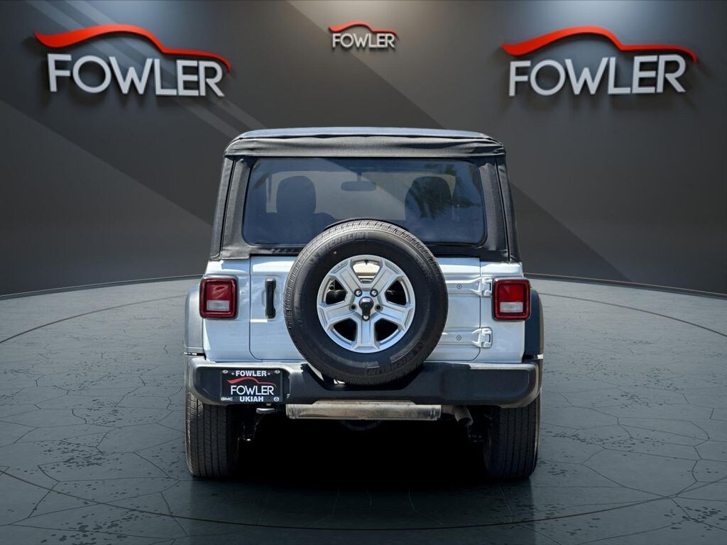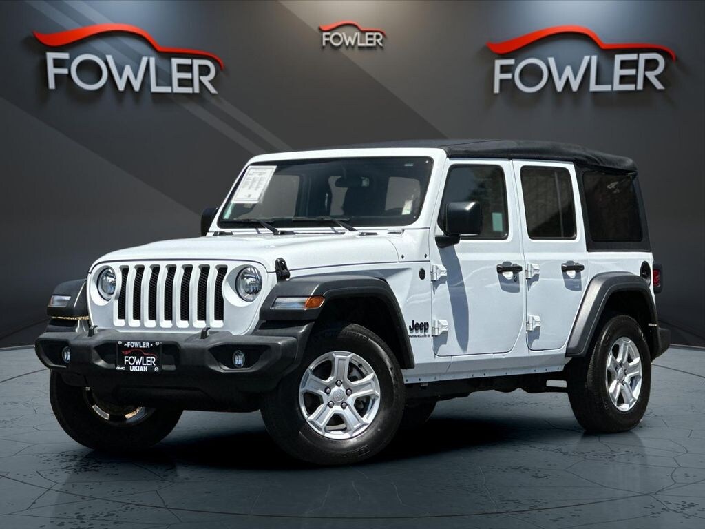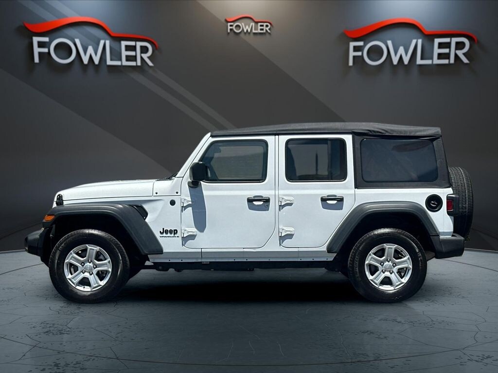 Bright White Clearcoat 2023 Jeep Wrangler Sport S 4WD 8-Speed Automatic 2.0L I4 DOHC 3.45 Overall Top Gear Ratio, 4-Wheel Disc Brakes, 8 Speakers, ABS brakes, Air Conditioning, AM/FM radio, Apple CarPlay, Apple CarPlay/Android Auto, Automatic Headlamps, Aux Battery, Brake assist, Cloth Low-Back Bucket Seats, Compass, Deep Tint Sunscreen Windows, Delay-off headlights, Driver door bin, Driver vanity mirror, Dual front impact airbags, Dual front side impact airbags, Electronic Stability Control, Emergency communication system: SiriusXM Guardian, Engine Oil Cooler, Front 1-Touch Down Power Windows, Front anti-roll bar, Front Bucket Seats, Front Center Armrest w/Storage, Front fog lights, Front reading lights, Google Android Auto, GPS Antenna Input, Integrated Center Stack Radio, Integrated roll-over protection, Integrated Voice Command w/Bluetooth, Low tire pressure warning, Non-Lock Fuel Cap w/o Discriminator, Normal Duty Suspension, Occupant sensing airbag, Outside temperature display, ParkView Rear Back-Up Camera, Passenger door bin, Passenger vanity mirror, Power Heated Mirrors, Power steering, Premium Wrapped Steering Wheel, Quick Order Package 22S Sport S, Radio data system, Radio: Uconnect 4 w/7" Display, Rear anti-roll bar, Rear reading lights, Remote Keyless Entry, Security Alarm, Speed control, Speed Sensitive Power Locks, Split folding rear seat, Sport S, Steering wheel mounted audio controls, Stop-Start Dual Battery System, Sun Visors w/Illuminated Vanity Mirrors, Tachometer, Telescoping steering wheel, Tilt steering wheel, Traction control, Trip computer, USB Host Flip, Variably intermittent wipers, Wheels: 17" x 7.5 Tech Silver Aluminum, Wheels: 17" x 7.5" Black Steel Styled, Wheels: 17" x 7.5" Tech Silver Aluminum (DISC).