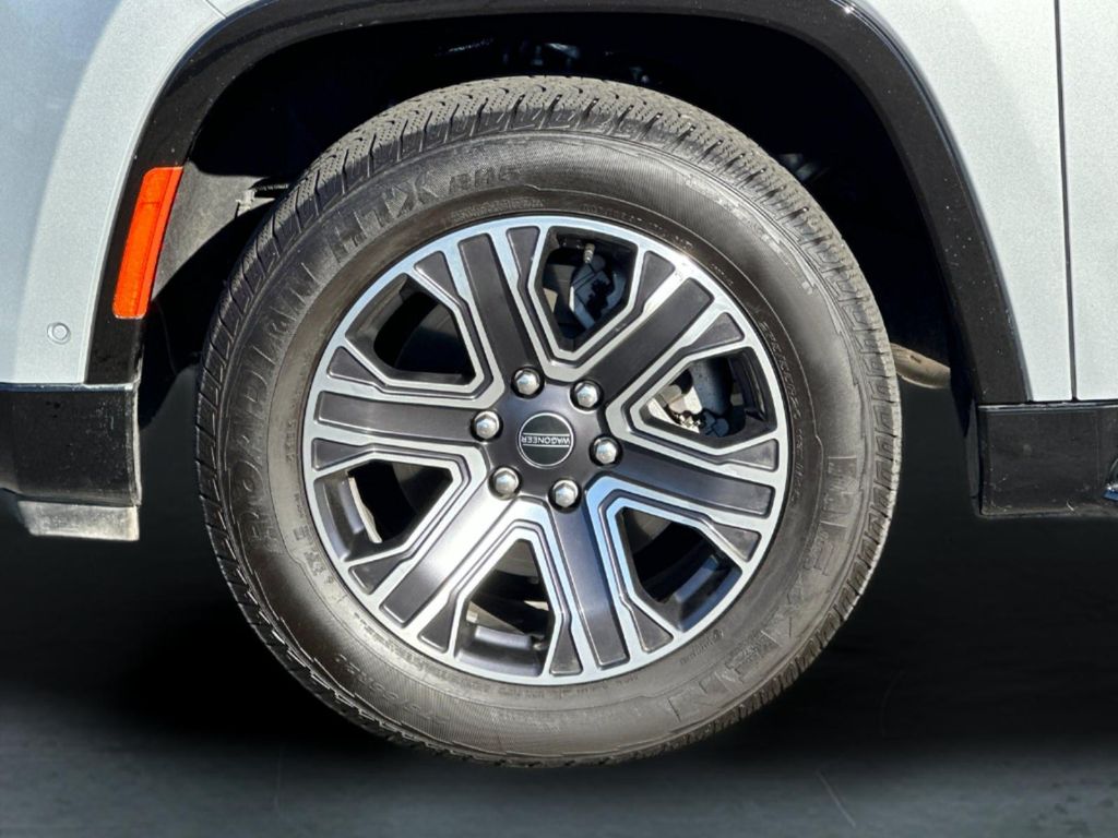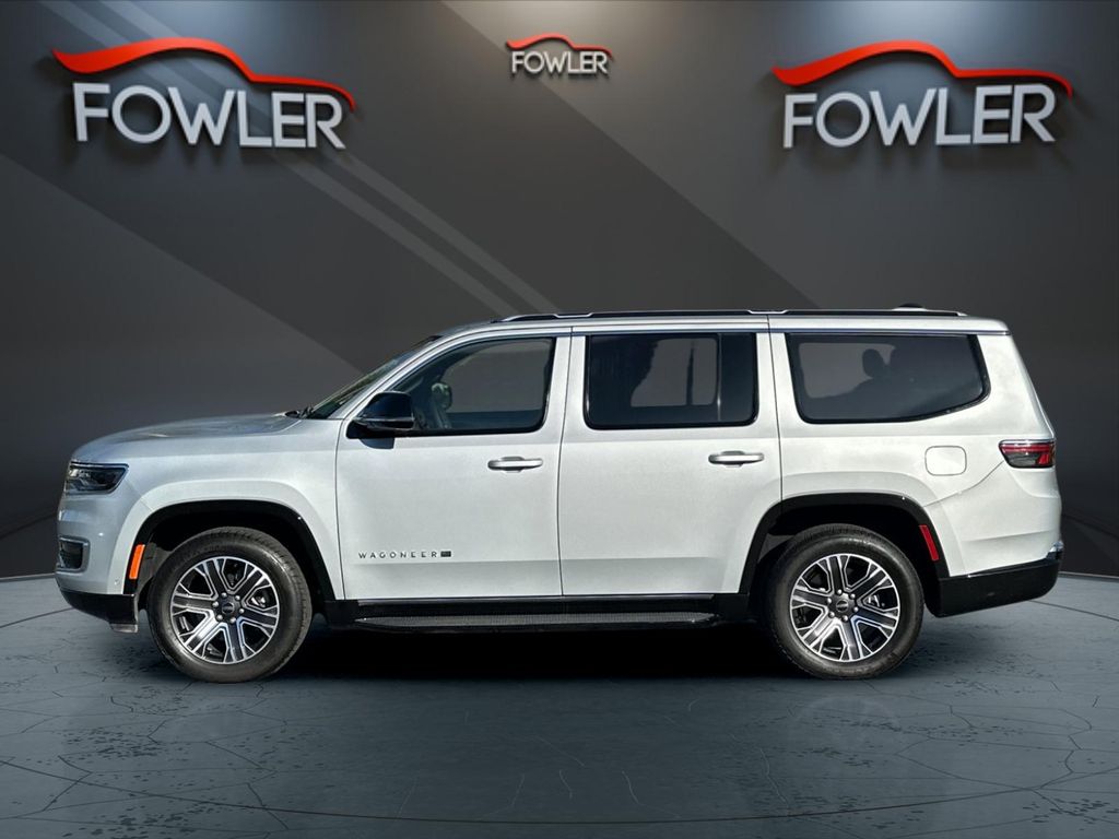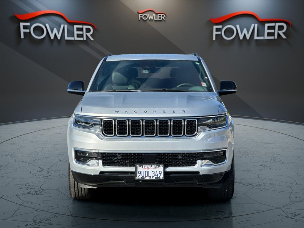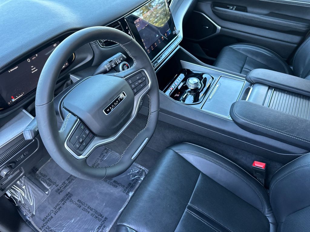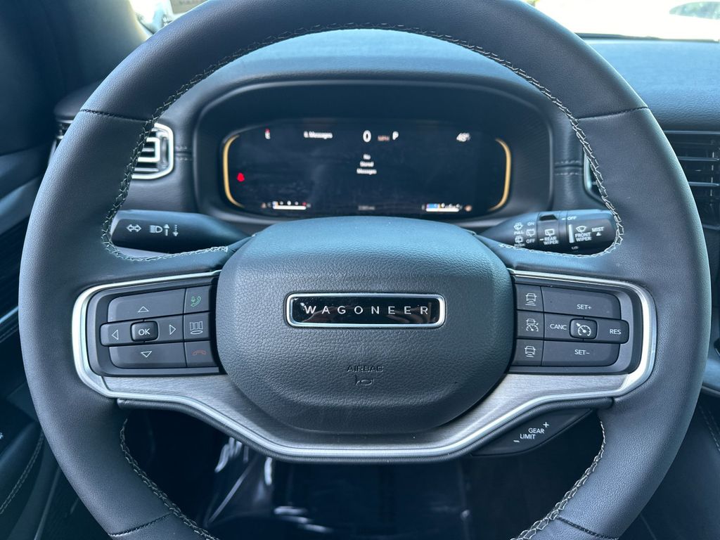 Silver Zynith 2025 Jeep Wagoneer 4WD 8-Speed Automatic 3.0L I6 10 Speakers, 3.55 Rear Axle Ratio, 3rd row seats: bench, 4-Wheel Disc Brakes, ABS brakes, Air Conditioning, Alloy wheels, AM/FM radio: SiriusXM with 360L, Anti-whiplash front head restraints, Apple CarPlay/Android Auto, Audio memory, Auto Adjust In Reverse Exterior Mirrors, Auto-dimming door mirrors, Auto-Dimming Exterior Driver Mirror, Auto-dimming Rear-View mirror, Auto-leveling suspension, Automatic temperature control, Brake assist, Bumpers: body-color, Compass, Delay-off headlights, Driver door bin, Driver vanity mirror, Driver's Seat Mounted Armrest, Dual front impact airbags, Dual front side impact airbags, Electronic Stability Control, Emergency communication system: Jeep Connect, Exterior Mirrors Approach Lamps, Exterior Mirrors w/Memory, Exterior Mirrors w/Supplemental Signals, Four wheel independent suspension, Front anti-roll bar, Front Bucket Seats, Front Center Armrest w/Storage, Front dual zone A/C, Front fog lights, Front License Plate Bracket, Front reading lights, Fully automatic headlights, Garage door transmitter, Heated door mirrors, Heated Exterior Mirrors, Heated front seats, Heated steering wheel, Illuminated entry, Knee airbag, Leather Trimmed Bucket Seats, Low tire pressure warning, Memory seat, Navigation System, Normal Duty Suspension, Occupant sensing airbag, Outside temperature display, Overhead airbag, Overhead console, Panic alarm, ParkView Rear Back-Up Camera, Passenger door bin, Passenger seat mounted armrest, Passenger vanity mirror, Power adjustable front head restraints, Power door mirrors, Power driver seat, Power Liftgate, Power passenger seat, Power steering, Power windows, Quick Order Package 25E, Radio data system, Radio: Uconnect 5 Nav w/10.1" Display, Rear air conditioning, Rear anti-roll bar, Rear dual zone A/C, Rear reading lights, Rear seat center armrest, Rear window defroster, Rear window wiper, Reclining 3rd row seat, Remote keyless entry, Security system, Speed control, Speed-sensing steering, Speed-Sensitive Wipers, Split folding rear seat, Steering wheel memory, Steering wheel mounted audio controls, Tachometer, Telescoping steering wheel, Tilt steering wheel, Traction control, Trip computer, Turn signal indicator mirrors, Variably intermittent wipers, Ventilated front seats, Voltmeter, Wheels: 20" x 9.0" Premium 2 Aluminum.