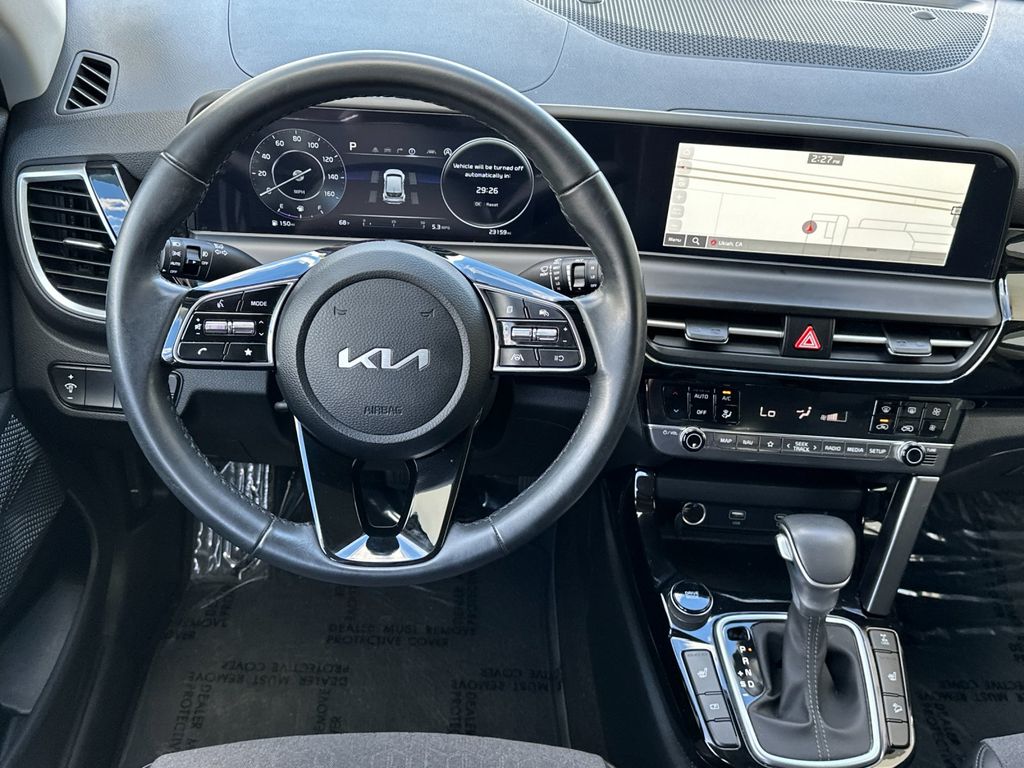 Pluton Blue/Black Roof 2024 Kia Seltos S AWD CVT 2.0L I4 MPI 4-Wheel Disc Brakes, 6 Speakers, 6.052 Axle Ratio, ABS brakes, Air Conditioning, Alloy wheels, AM/FM radio: SiriusXM, Apple CarPlay & Android Auto, Auto High-beam Headlights, Automatic temperature control, Brake assist, Bumpers: body-color, Carpet Floor Mats, Delay-off headlights, Driver door bin, Driver vanity mirror, Dual front impact airbags, Dual front side impact airbags, Electronic Stability Control, Emergency communication system: 911 Connect, Exterior Parking Camera Rear, Four wheel independent suspension, Front anti-roll bar, Front Bucket Seats, Front Center Armrest, Front fog lights, Front reading lights, Fully automatic headlights, Heated door mirrors, Heated Front Bucket Seats, Heated front seats, Illuminated entry, Leather Shift Knob, Leather steering wheel, Low tire pressure warning, Navigation System, Occupant sensing airbag, Outside temperature display, Overhead airbag, Overhead console, Panic alarm, Passenger door bin, Passenger vanity mirror, Power door mirrors, Power steering, Power windows, Radio: AM/FM/HD/Satellite Display System w/Navigation, Rear seat center armrest, Rear window defroster, Rear window wiper, Remote keyless entry, Security system, Speed control, Speed-sensing steering, Split folding rear seat, Spoiler, Steering wheel mounted audio controls, Tachometer, Telescoping steering wheel, Tilt steering wheel, Traction control, Trip computer, Turn signal indicator mirrors, Variably intermittent wipers.