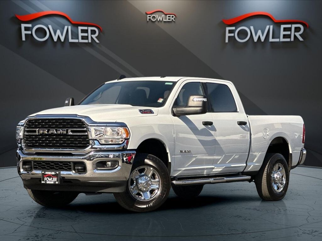 Bright White Clearcoat 2024 Ram 2500 Big Horn 4WD 8-Speed Automatic 6.4L V8 2 Way Rear Headrest Seat, 3.73 Axle Ratio, 4 Way Front Headrests, 4-Wheel Disc Brakes, 40/20/40 Split Bench Seat, 6 Speakers, ABS brakes, Active Noise Control System, Air Conditioning, Anti-Spin Differential Rear Axle, Bed Utility Group, Black Exterior Mirrors, Bluetooth Handsfree Phone & Audio, Brake assist, Bumpers: chrome, Center Hub, Center Stack Storage Drawer, Chrome Flat Cab-Length Side Steps, Cloth 40/20/40 Bench Seat, Compass, Connectivity - US/Canada, Delay-off headlights, Driver door bin, Dual front impact airbags, Dual front side impact airbags, Electronic Stability Control, Electronically Controlled Throttle, Emergency communication system: SiriusXM Guardian, Exterior Mirrors w/Heating Element, Front anti-roll bar, Front Center Armrest w/Storage, Front Fog Lamps, Front License Plate Bracket, Front reading lights, Fully automatic headlights, Global Telematics Box Module (TBM), GPS Antenna Input, Heated door mirrors, Illuminated entry, Integrated Center Stack Radio, Integrated Voice Command w/Bluetooth, LED Bed Lighting, Low tire pressure warning, Manual Adjust 4-Way Driver Seat, Manufacturer's Statement of Origin, MOPAR Deployable Bed Step, MOPAR Spray In Bedliner, Occupant sensing airbag, Outside temperature display, Overhead airbag, Overhead console, Panic alarm, ParkView Rear Back-Up Camera, Passenger door bin, Passenger vanity mirror, Power 2-Way Driver Lumbar Adjust, Power Adjust Mirrors, Power door mirrors, Power steering, Power windows, Protection Group, Quick Order Package 2GZ Big Horn, Radio data system, Radio: Uconnect 5 W w/8.4" Display, Rear anti-roll bar, Rear Folding Seat, Rear seat center armrest, Rear step bumper, Remote keyless entry, SiriusXM Radio Service, Speed control, Tachometer, Tilt steering wheel, Tip Start, Tow Hooks, Traction control, Trip computer, Turn signal indicator mirrors, Variably intermittent wipers, Voltmeter, Wheels: 18" x 8.0" Steel Chrome Clad.