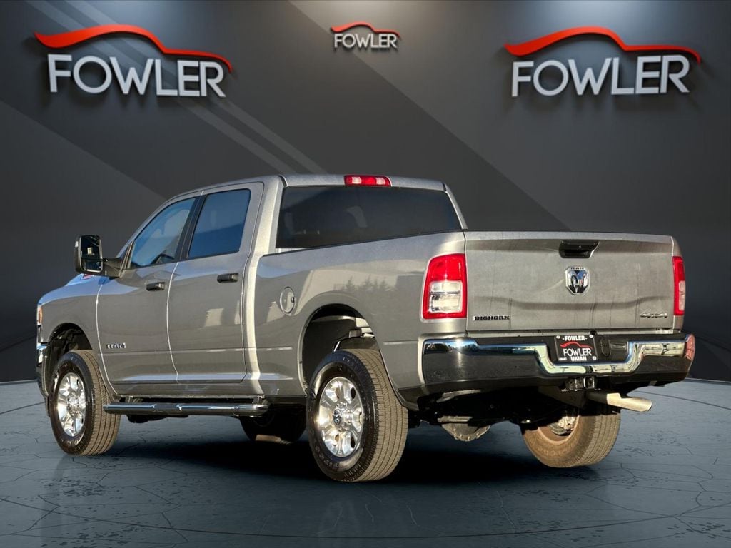 Billet Silver Metallic Clearcoat 2024 Ram 2500 Big Horn 4WD 8-Speed Automatic 6.4L V8 2 Way Rear Headrest Seat, 2nd Row In Floor Storage Bins, 3.73 Axle Ratio, 4 Way Front Headrests, 4-Wheel Disc Brakes, 40/20/40 Split Bench Seat, 4G LTE Wi-Fi Hot Spot, 8.4" Touchscreen Display, 9 Alpine Speakers w/Subwoofer, ABS brakes, Active Noise Control System, Air Conditioning, Anti-Spin Differential Rear Axle, Apple CarPlay, Auto Power-Folding Mirrors, Bed Utility Group, Big Horn IP Badge, Black Exterior Mirrors, Bluetooth Handsfree Phone & Audio, Brake assist, Bumpers: chrome, Center Hub, Center Stack Storage Drawer, Chrome Flat Cab-Length Side Steps, Cloth 40/20/40 Bench Seat, Compass, Connectivity - US/Canada, Delay-off headlights, Driver door bin, Dual front impact airbags, Dual front side impact airbags, Dual Glove Boxes, Electronic Stability Control, Electronically Controlled Throttle, Emergency communication system: SiriusXM Guardian, Exterior Mirrors Courtesy Lamps, Exterior Mirrors w/Heating Element, Exterior Mirrors w/Supplemental Signals, Foam Bottle Insert (Door Trim Panel), Footwell Courtesy Lamp, For Details, Visit DriveUconnect.com, For More Info, Call 800-643-2112, Forward & Reverse Utility Lights, Front anti-roll bar, Front Armrest w/Cupholders, Front Center Armrest w/Storage, Front Center Seat Cushion Storage, Front Fog Lamps, Front License Plate Bracket, Front reading lights, Front Seat Back Map Pockets, Fully automatic headlights, Global Telematics Box Module (TBM), Glove Box Lamp, Google Android Auto, GPS Antenna Input, Heated door mirrors, Illuminated entry, Integrated Center Stack Radio, Integrated Voice Command w/Bluetooth, Leather Wrapped Steering Wheel, LED Bed Lighting, Level 1 Equipment Group, Locking Lower Glove Box, Low tire pressure warning, Manual Adjust 4-Way Driver Seat, Manual Adjust 4-Way Front Passenger Seat, Manufacturer's Statement of Origin, Mirror Running Lights, MOPAR Deployable Bed Step, MOPAR Spray In Bedliner, Occupant sensing airbag, Outside temperature display, Overhead airbag, Overhead console, Panic alarm, ParkView Rear Back-Up Camera, Passenger door bin, Passenger vanity mirror, Power 2-Way Driver Lumbar Adjust, Power Adjust 8-Way Driver Seat, Power Adjust Mirrors, Power Adjustable Convex Aux Mirrors, Power door mirrors, Power Heated Fold Telescope Mirrors, Power steering, Power Telescoping Mirrors, Power windows, Premium Cloth 40/20/40 Bench Seat (DISC), Protection Group, Quick Order Package 2GZ Big Horn, Radio data system, Radio: Uconnect 5 W w/8.4" Display, Rear 60/40 Folding Seat, Rear anti-roll bar, Rear Dome w/On/Off Switch Lamp, Rear Folding Seat, Rear seat center armrest, Rear step bumper, Remote keyless entry, Remote USB Port - Charge Only, Selectable Tire Fill Alert, SiriusXM Radio Service, SiriusXM Satellite Radio, Speed control, Steering Wheel Mounted Audio Controls, Storage Tray, Tachometer, Tilt steering wheel, Tip Start, Tow Hooks, Traction control, Trip computer, Turn signal indicator mirrors, Variably intermittent wipers, Voltmeter, Wheels: 18" x 8.0" Polished Aluminum.