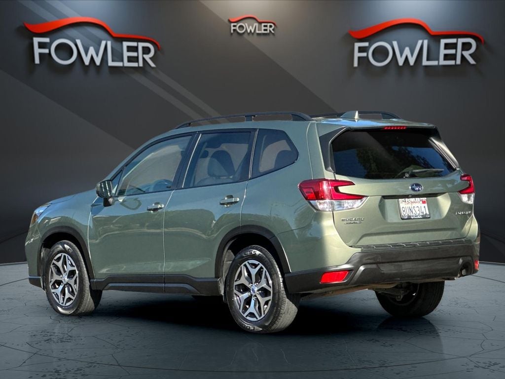 Jasper Green Metallic 2021 Subaru Forester Premium AWD Lineartronic CVT 2.5L 4-Cylinder DOHC 16V VVT 3.70 Axle Ratio, 4-Wheel Disc Brakes, 6 Speakers, ABS brakes, Air Conditioning, All-Weather Floor Liners, Alloy wheels, AM/FM radio: SiriusXM, Auto High-beam Headlights, Auto-Dimming Exterior Mirror w/Approach Lighting, Auto-Dimming Mirror w/Compass & HomeLink, Automatic temperature control, Brake assist, Bumpers: body-color, Cargo Tray, CD player, Cloth Upholstery, Driver door bin, Driver vanity mirror, Dual front impact airbags, Dual front side impact airbags, Electronic Stability Control, Emergency communication system: STARLINK Safety and Security (Subscription Required), Exterior Parking Camera Rear, Four wheel independent suspension, Front anti-roll bar, Front Bucket Seats, Front Center Armrest, Front fog lights, Front reading lights, Fully automatic headlights, Heated door mirrors, Heated Front Bucket Seats, Heated front seats, Illuminated entry, Knee airbag, Low tire pressure warning, Occupant sensing airbag, Outside temperature display, Overhead airbag, Overhead console, Panic alarm, Passenger door bin, Passenger vanity mirror, Popular Package #1, Power door mirrors, Power driver seat, Power moonroof: Panoramic, Power steering, Power windows, Radio data system, Radio: Subaru Starlink 6.5" Multimedia Plus System, Rear anti-roll bar, Rear Bumper Cover, Rear seat center armrest, Rear window defroster, Rear window wiper, Remote keyless entry, Roof rack: rails only, Security system, Speed control, Speed-sensing steering, Split folding rear seat, Spoiler, Standard Model, STARLINK/Apple CarPlay/Android Auto, Steering wheel mounted audio controls, Tachometer, Telescoping steering wheel, Tilt steering wheel, Traction control, Trip computer, Variably intermittent wipers, Wheels: 17" x 7.0J Black Machine Finish Alloy.