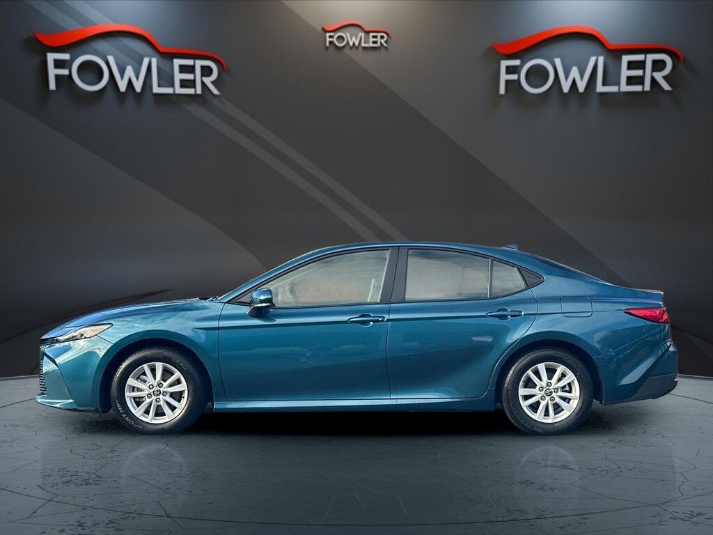 Ocean Gem 2025 Toyota Camry LE Hybrid FWD eCVT 2.5L 4-Cylinder 16V DOHC 2.5L 4-Cylinder 16V DOHC, Black w/Fabric Seat Trim, ABS brakes, Active Cruise Control, Alloy wheels, Electronic Stability Control, Front dual zone A/C, Heated door mirrors, Illuminated entry, Low tire pressure warning, Remote keyless entry, Traction control, 4-Wheel Disc Brakes, 6 Speakers, Air Conditioning, AM/FM radio: SiriusXM, Apple CarPlay/Android Auto, Auto High-beam Headlights, Automatic temperature control, Brake assist, Bumpers: body-color, Delay-off headlights, Driver door bin, Driver vanity mirror, Dual front impact airbags, Dual front side impact airbags, Emergency communication system: Safety Connect (up to 10-year trial subscription), Exterior Parking Camera Rear, Fabric Seat Trim, Four wheel independent suspension, Front anti-roll bar, Front Bucket Seats, Front Center Armrest, Front reading lights, Fully automatic headlights, Knee airbag, Occupant sensing airbag, Outside temperature display, Overhead airbag, Overhead console, Panic alarm, Passenger door bin, Passenger vanity mirror, Power door mirrors, Power steering, Power windows, Radio data system, Radio: Toyota Audio Multimedia w/8" Touchscreen, Rear anti-roll bar, Rear seat center armrest, Rear side impact airbag, Rear window defroster, Security system, Speed control, Speed-sensing steering, Split folding rear seat, Steering wheel mounted audio controls, Telescoping steering wheel, Tilt steering wheel, Trip computer, Turn signal indicator mirrors, Variably intermittent wipers, Wheels: 16" Silver-Finished Alloy, 2.5L 4-Cylinder 16V DOHC, Black w/Fabric Seat Trim, ABS brakes, Active Cruise Control, Alloy wheels, Electronic Stability Control, Front dual zone A/C, Heated door mirrors, Illuminated entry, Low tire pressure warning, Remote keyless entry, Traction control.